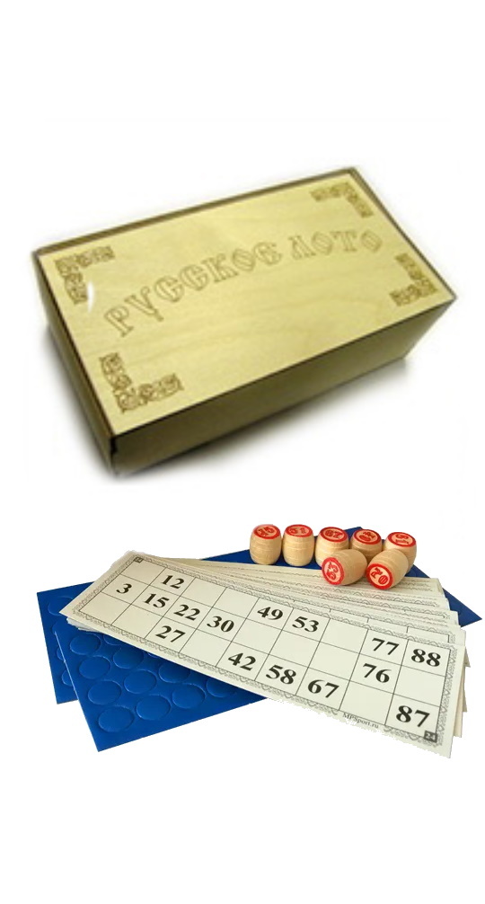 Русское лото в деревянной шкатулке с выжиганием