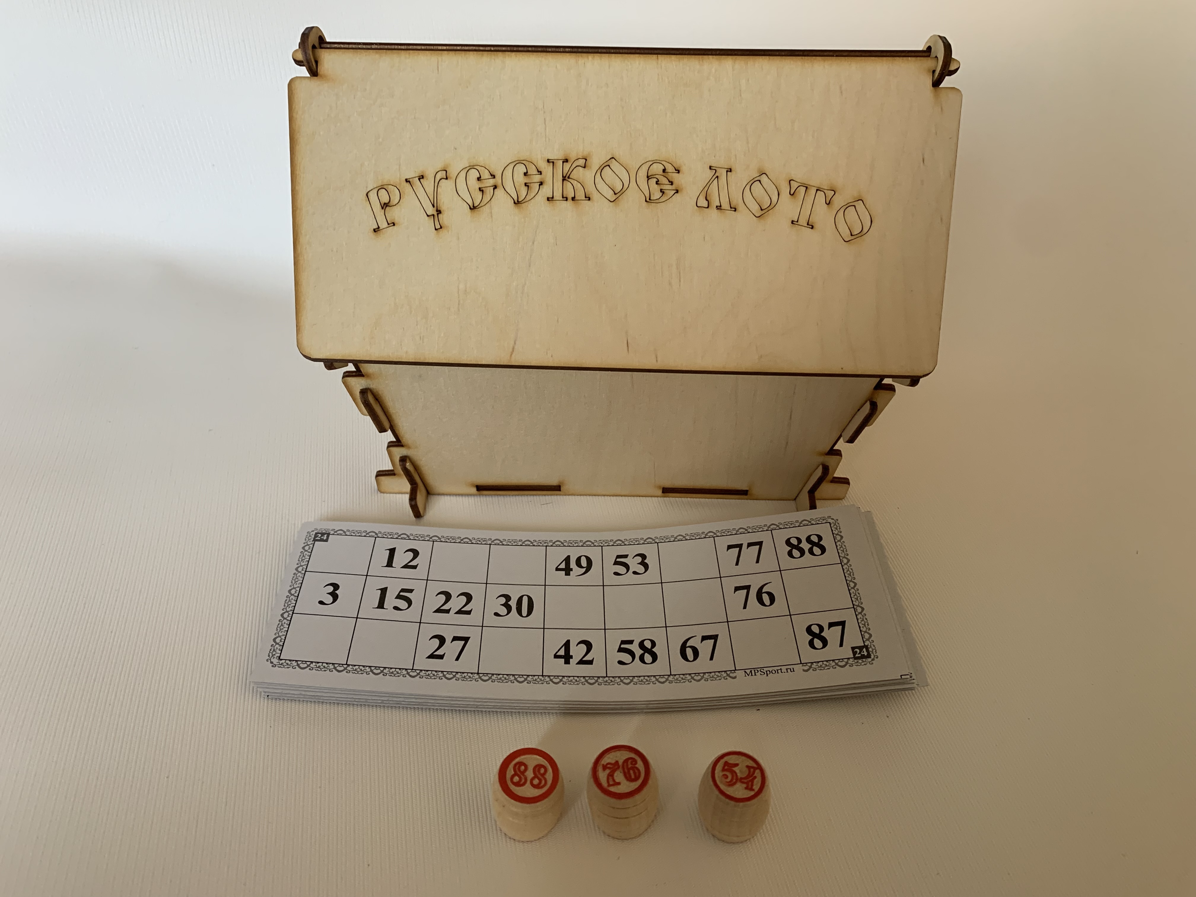 Русское лото в деревянной шкатулке "Теремок" с выжиганием