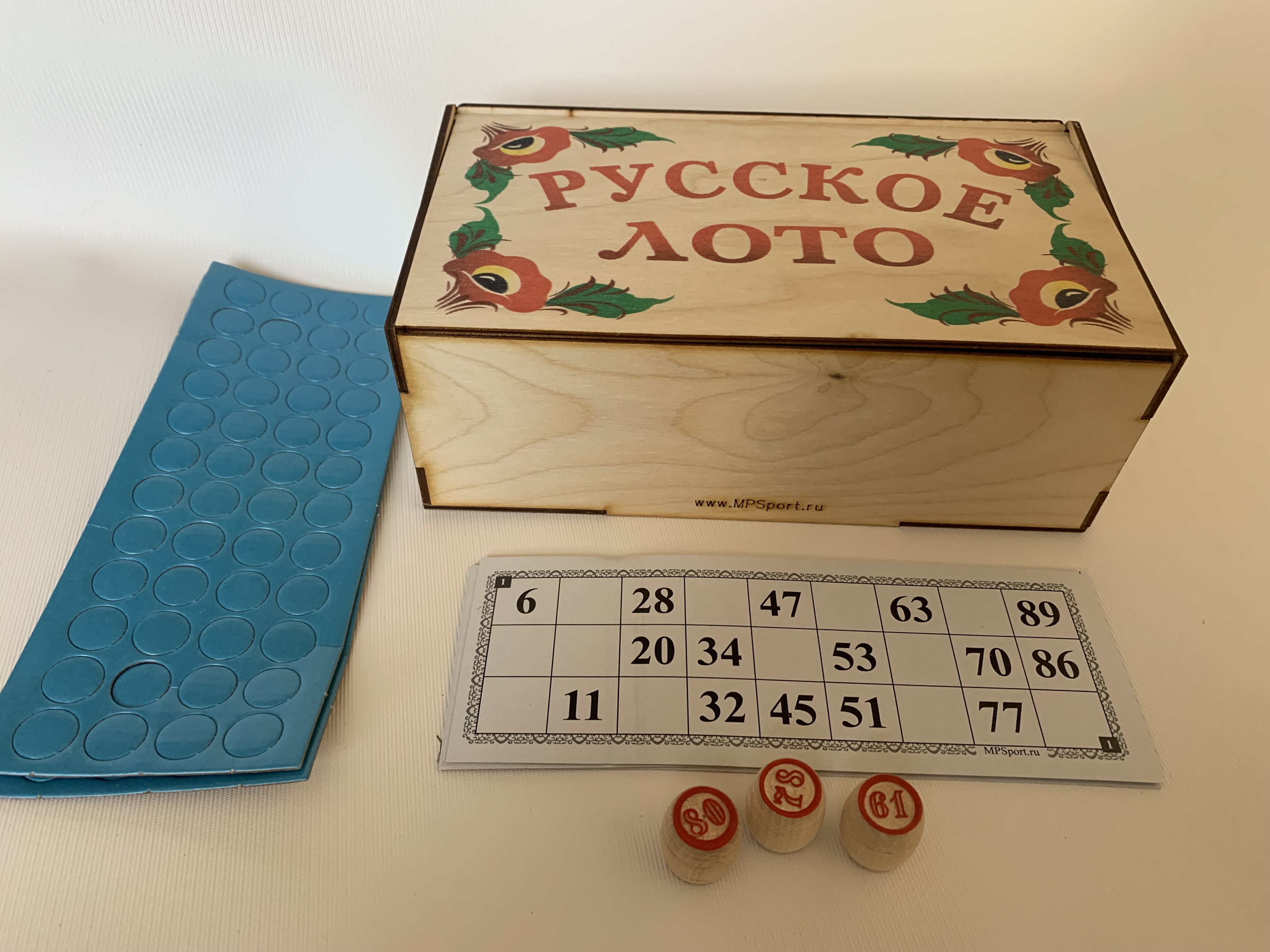Русское лото в деревянной шкатулке, полноцветная печать-Цветы