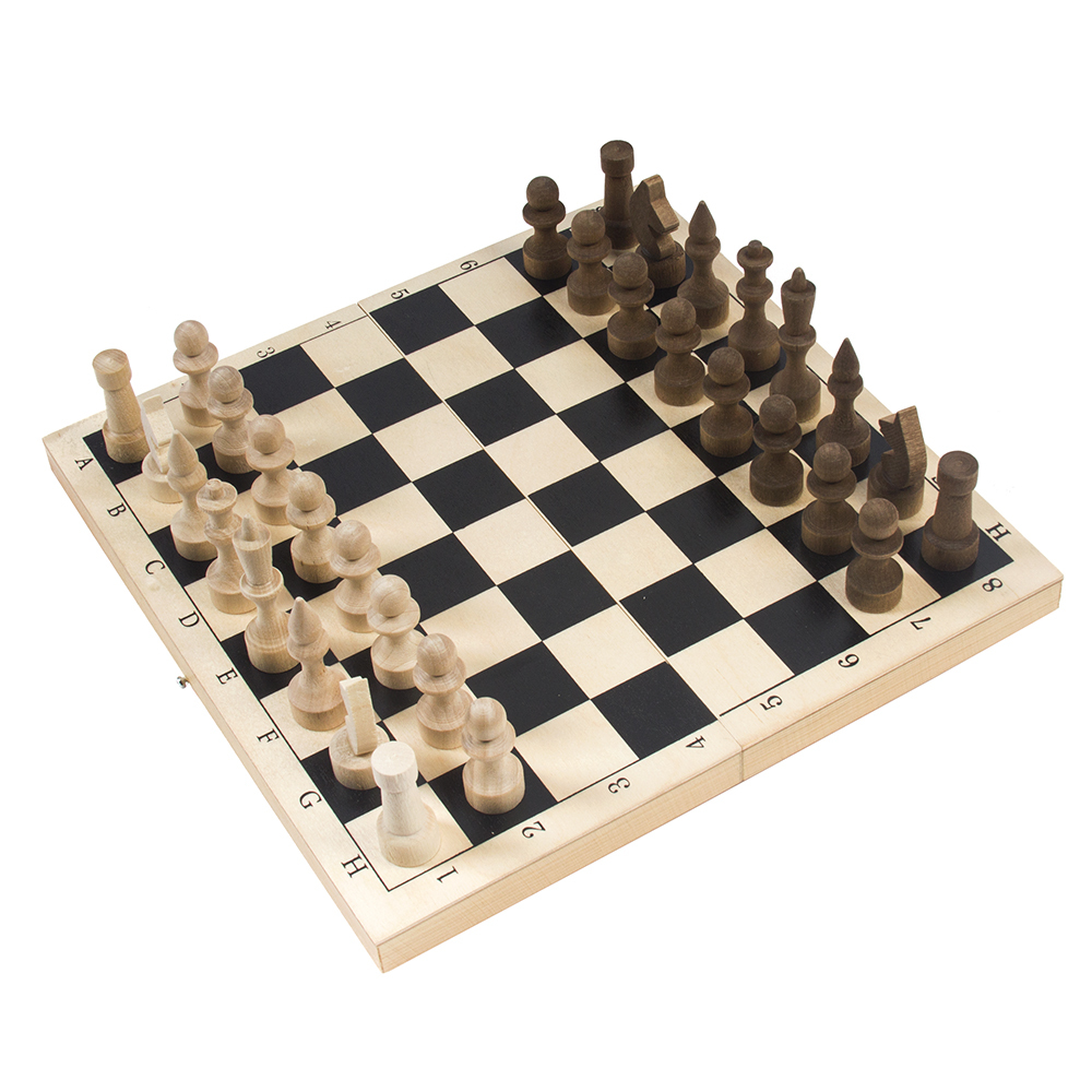 Шахматы деревянные обиходные (лак) с доской 02-18