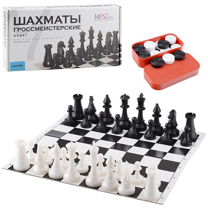 Шахматы гроссмейстерские пластиковые + шашки + доска шахматная