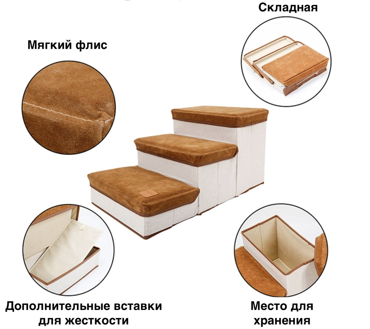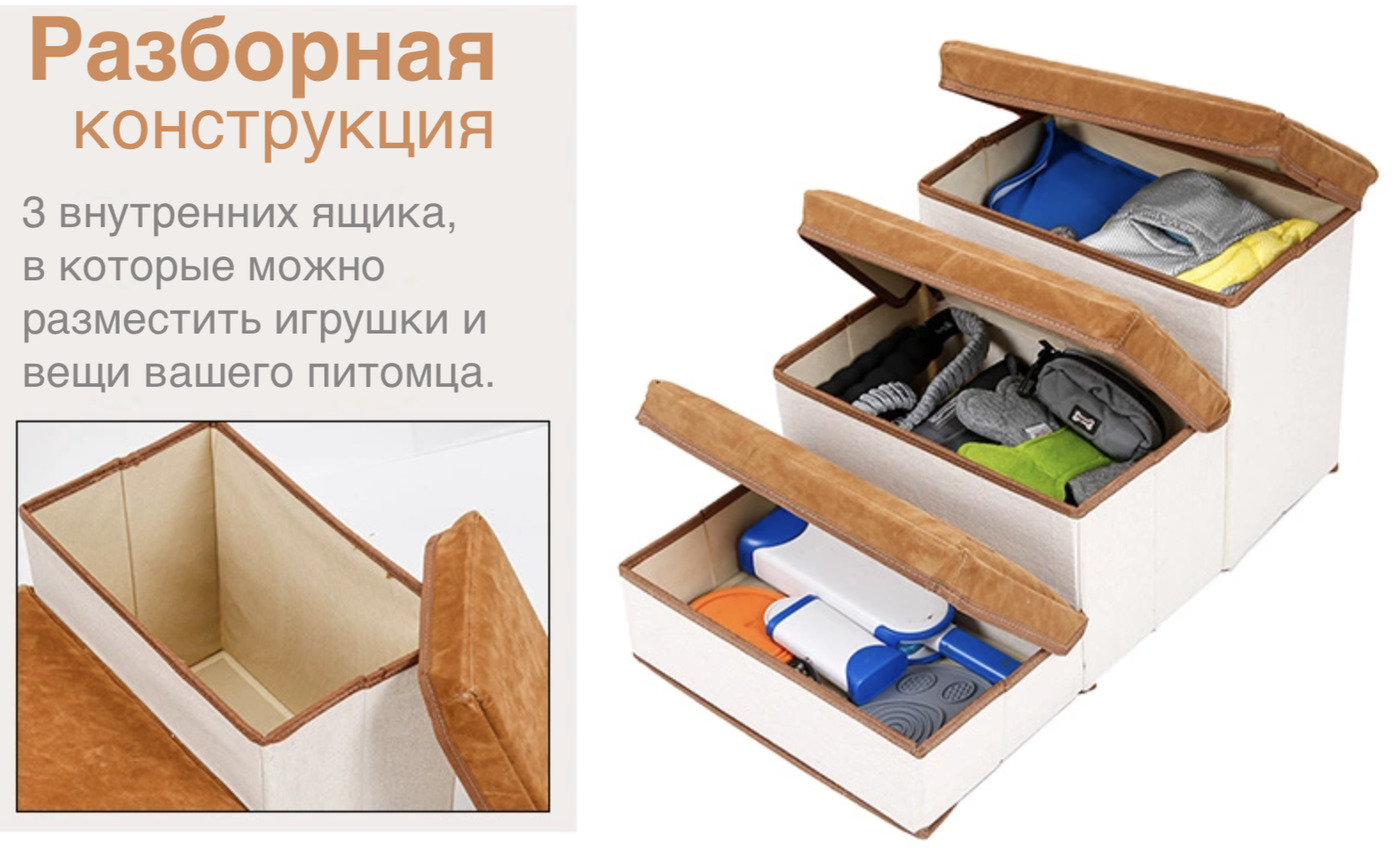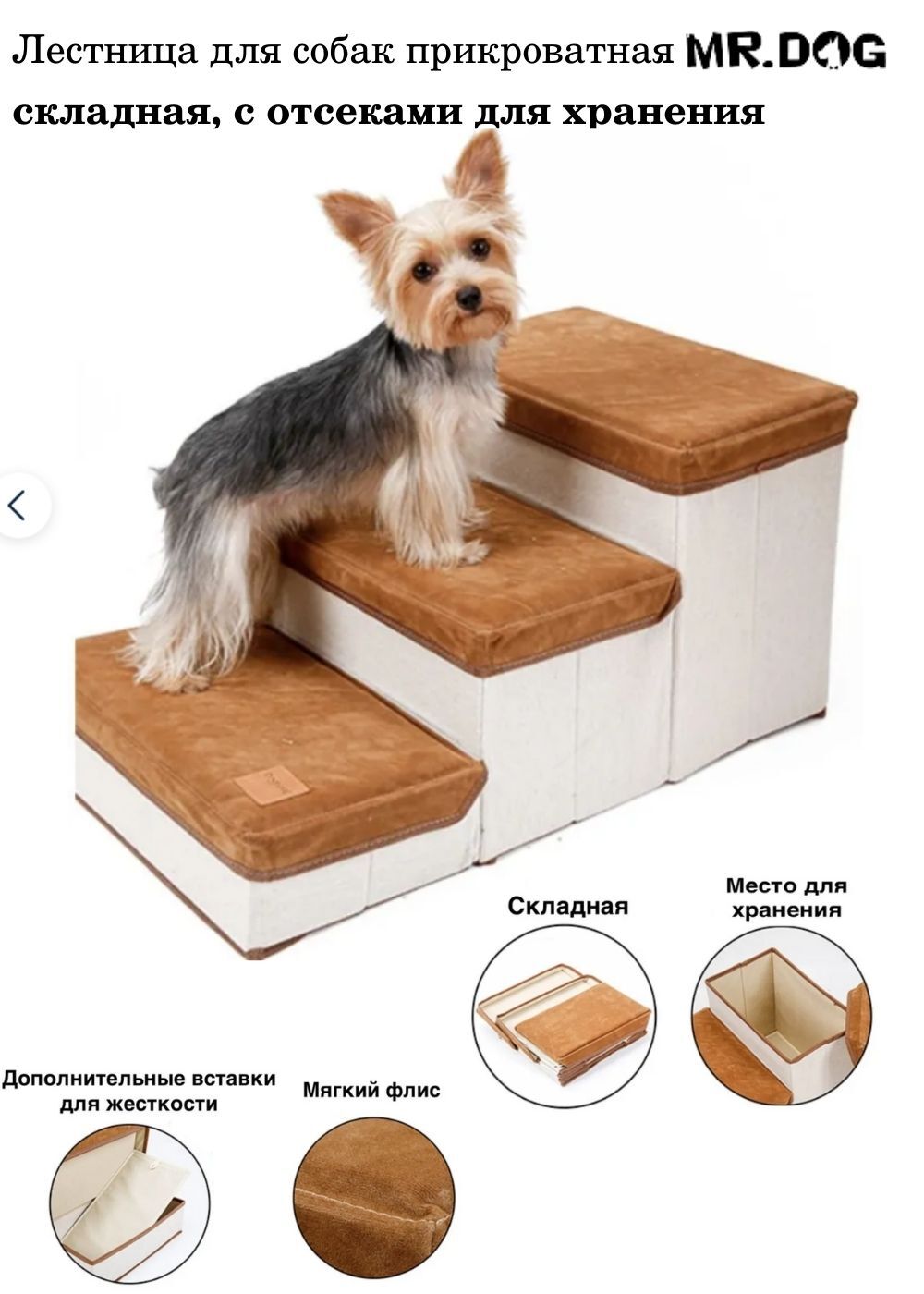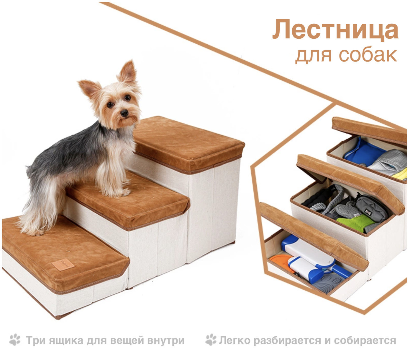 Лестница для собак прикроватная, складываемая, с отсеками для хранения