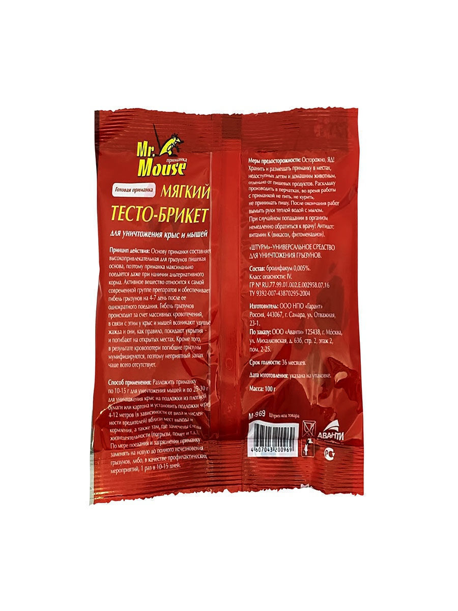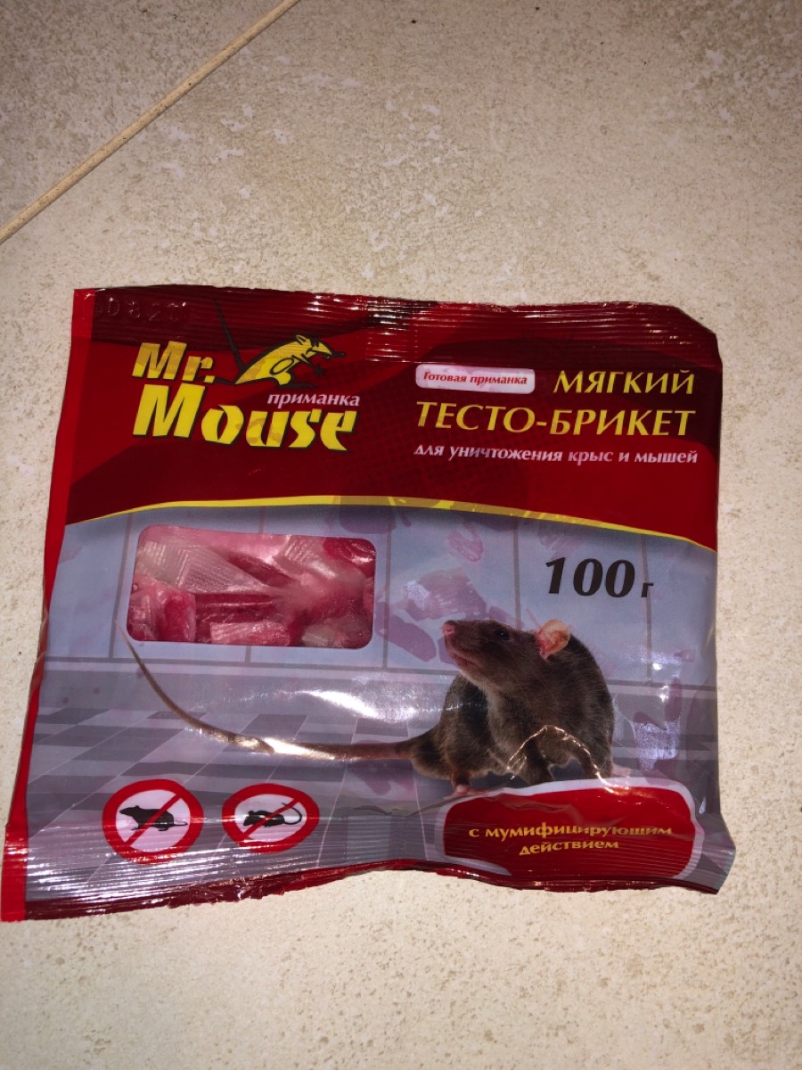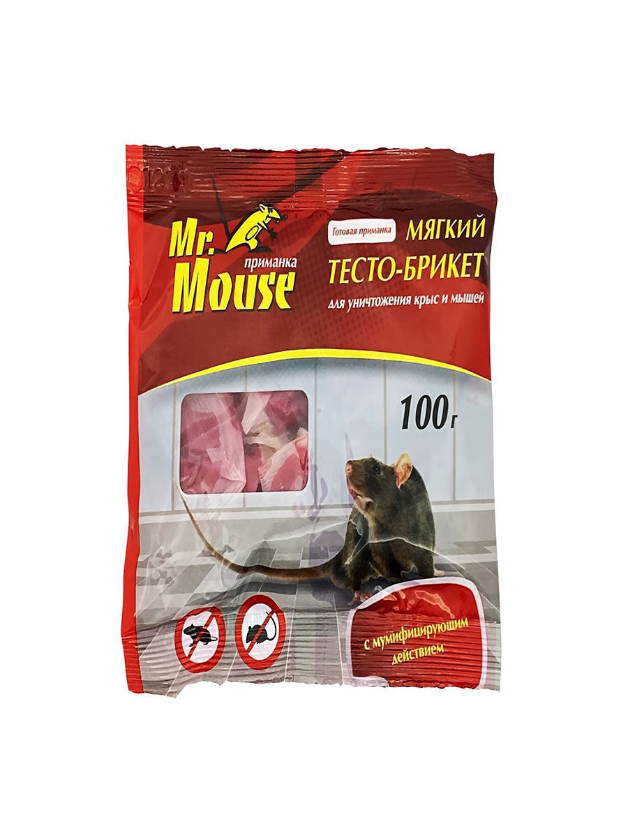 Mr.Mouse мягкий тесто- брикет для уничтожения мышей и крыс 100г с мумифицирующим эффектом