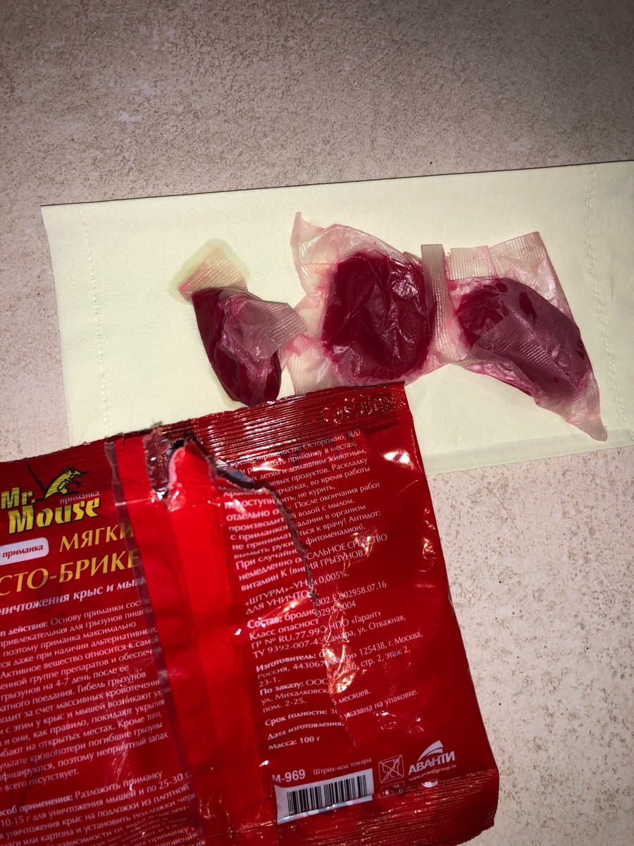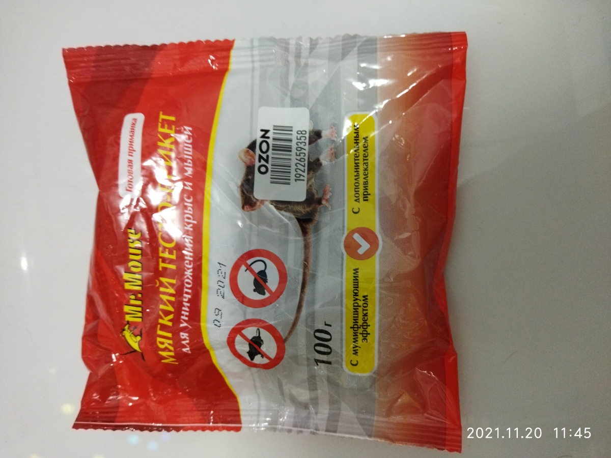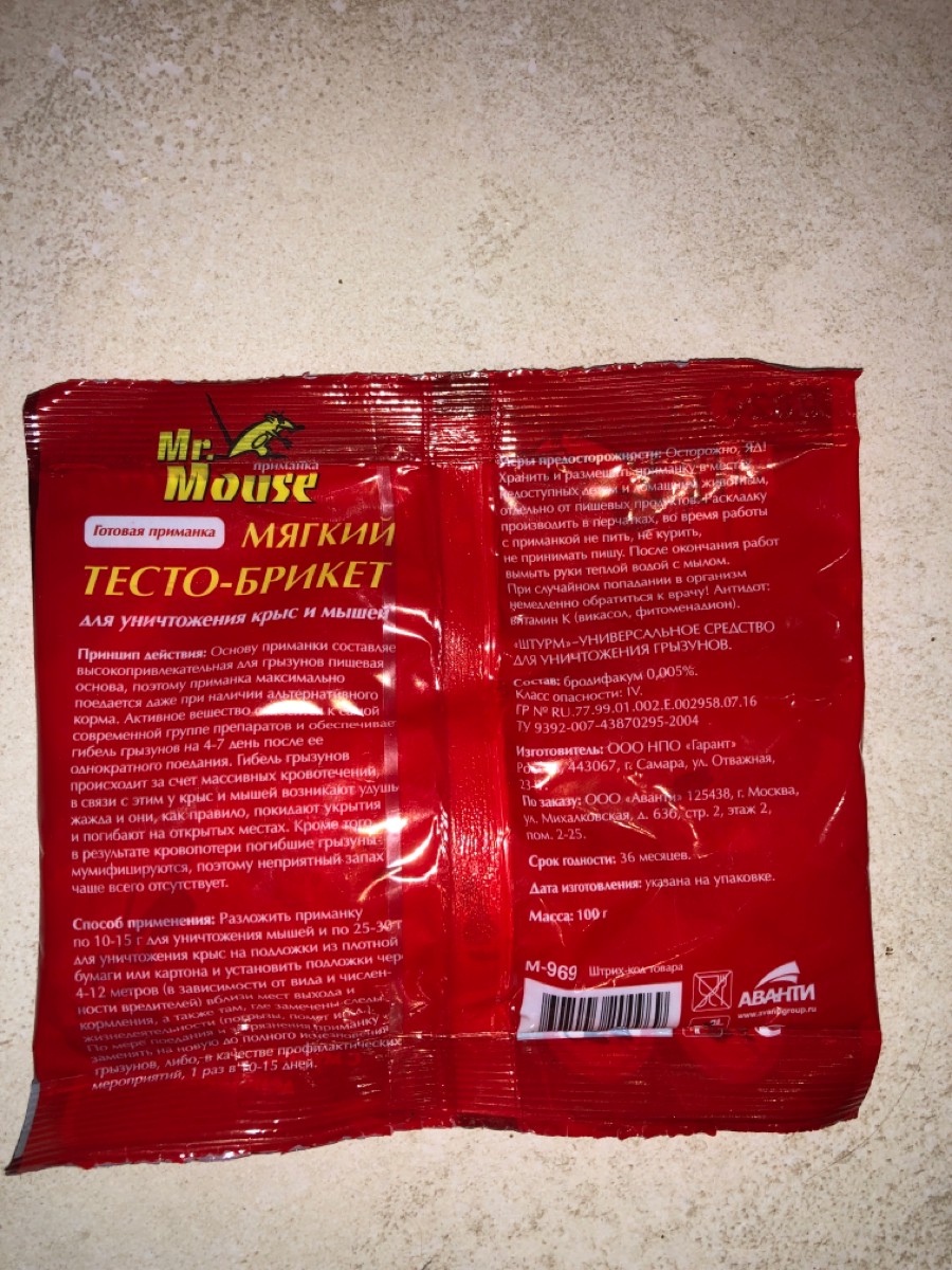 Mr.Mouse мягкий тесто- брикет для уничтожения мышей и крыс 100г с мумифицирующим эффектом
