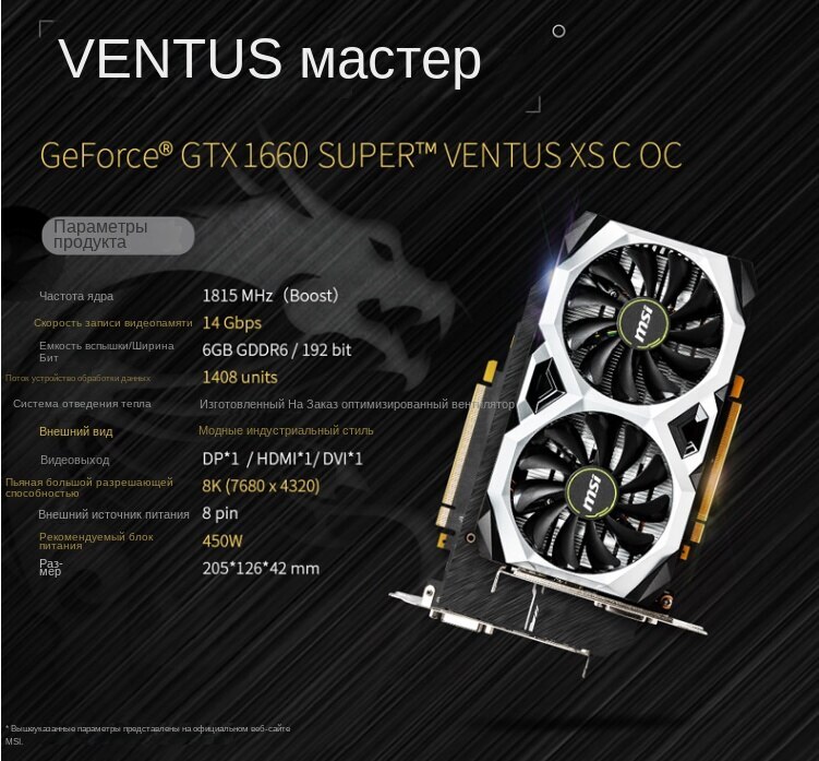 Видеокарта MSI GeForce GTX 1660 SUPER 6 ГБ (VENTUS XS C OC)