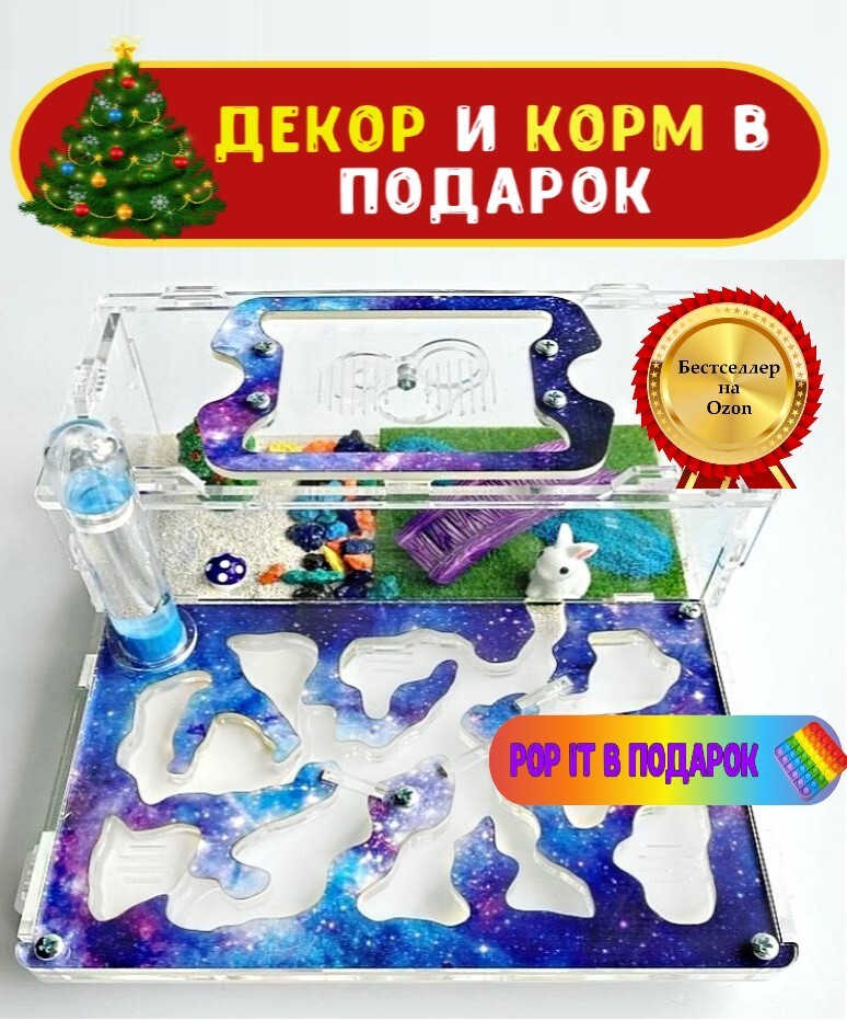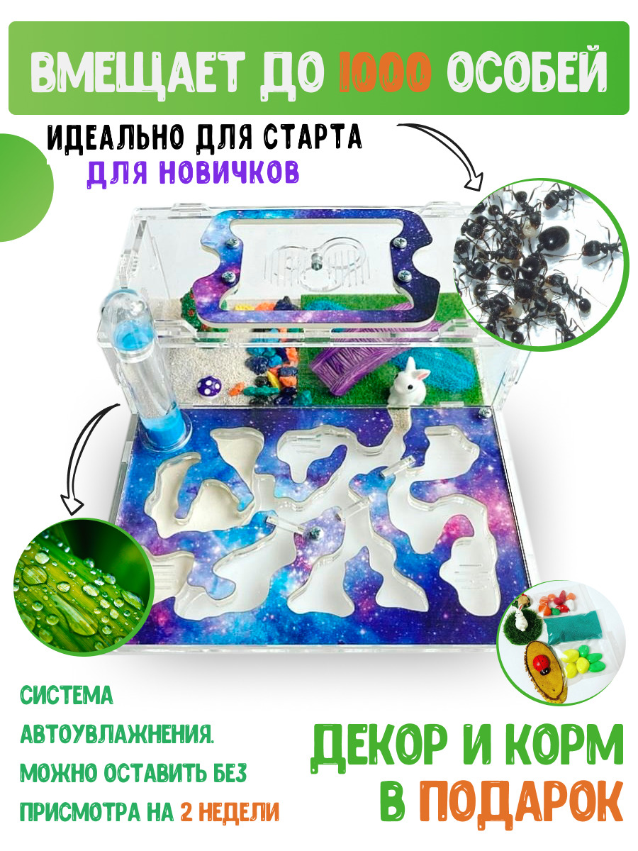 Муравьиная ферма "Стартовая" Космос + ДЕКОР и КОРМ В ПОДАРОК! Формикарий для муравьев