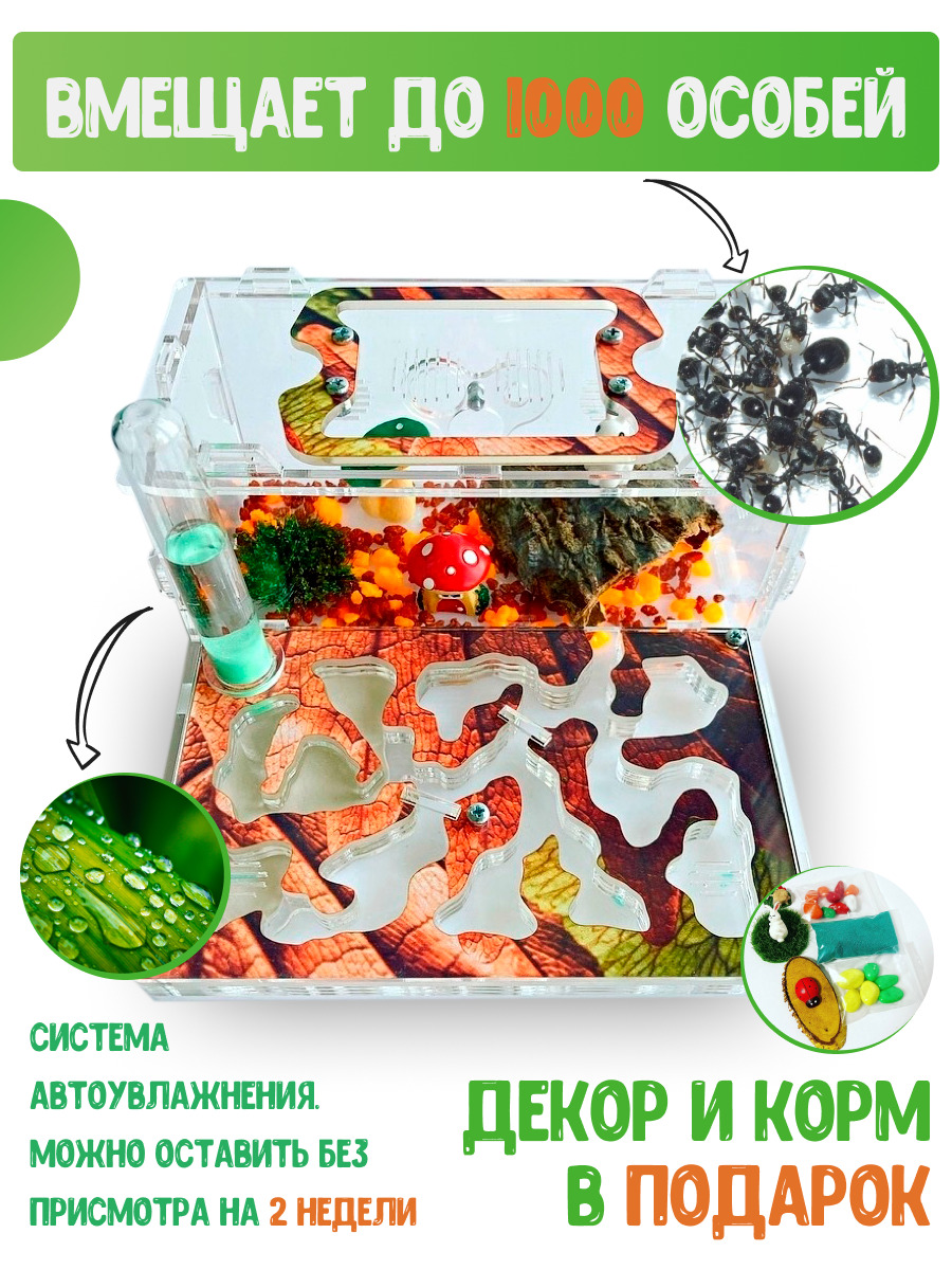 Муравьиная ферма "Листва" + ДЕКОР И КОРМ В ПОДАРОК! Формикарий для муравьев