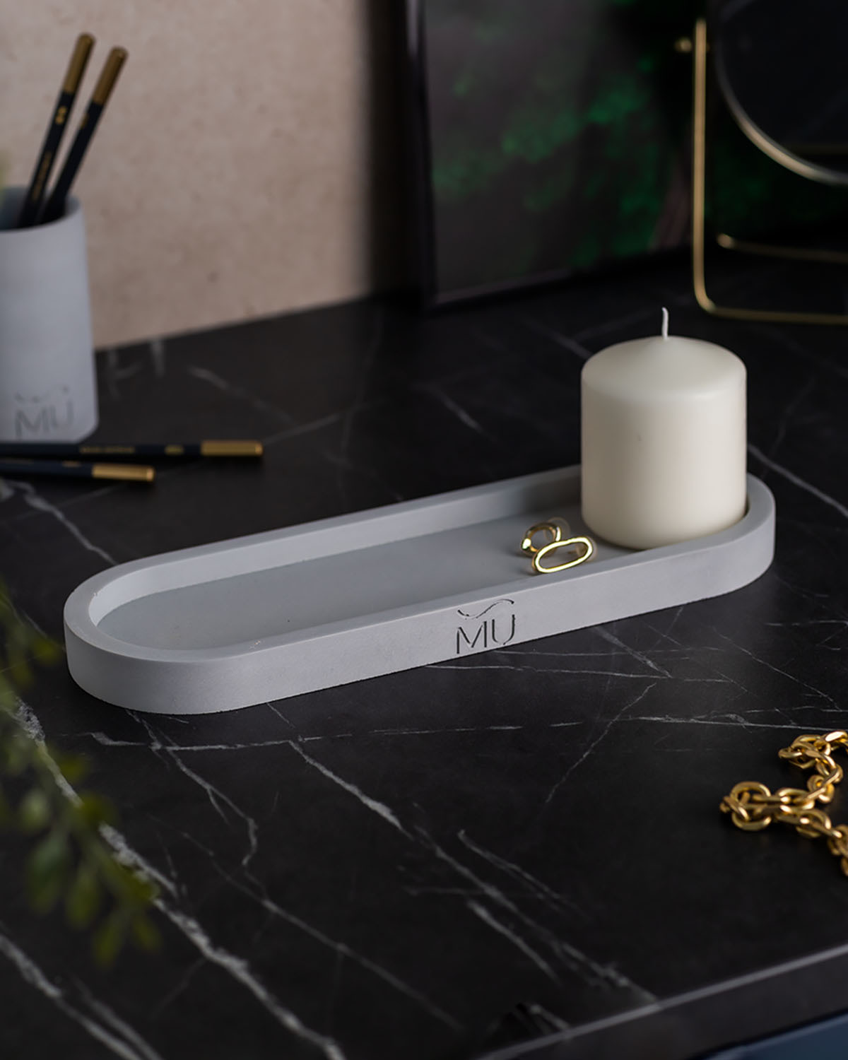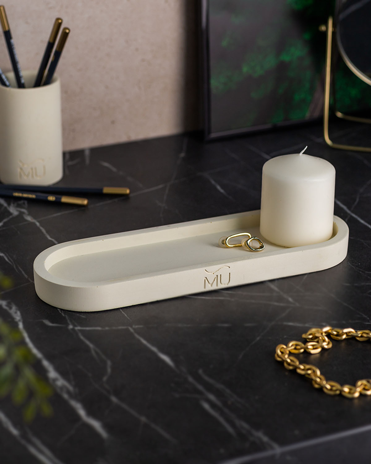 Декоративная подставка из бетона Lora M Ivory 30x10 см