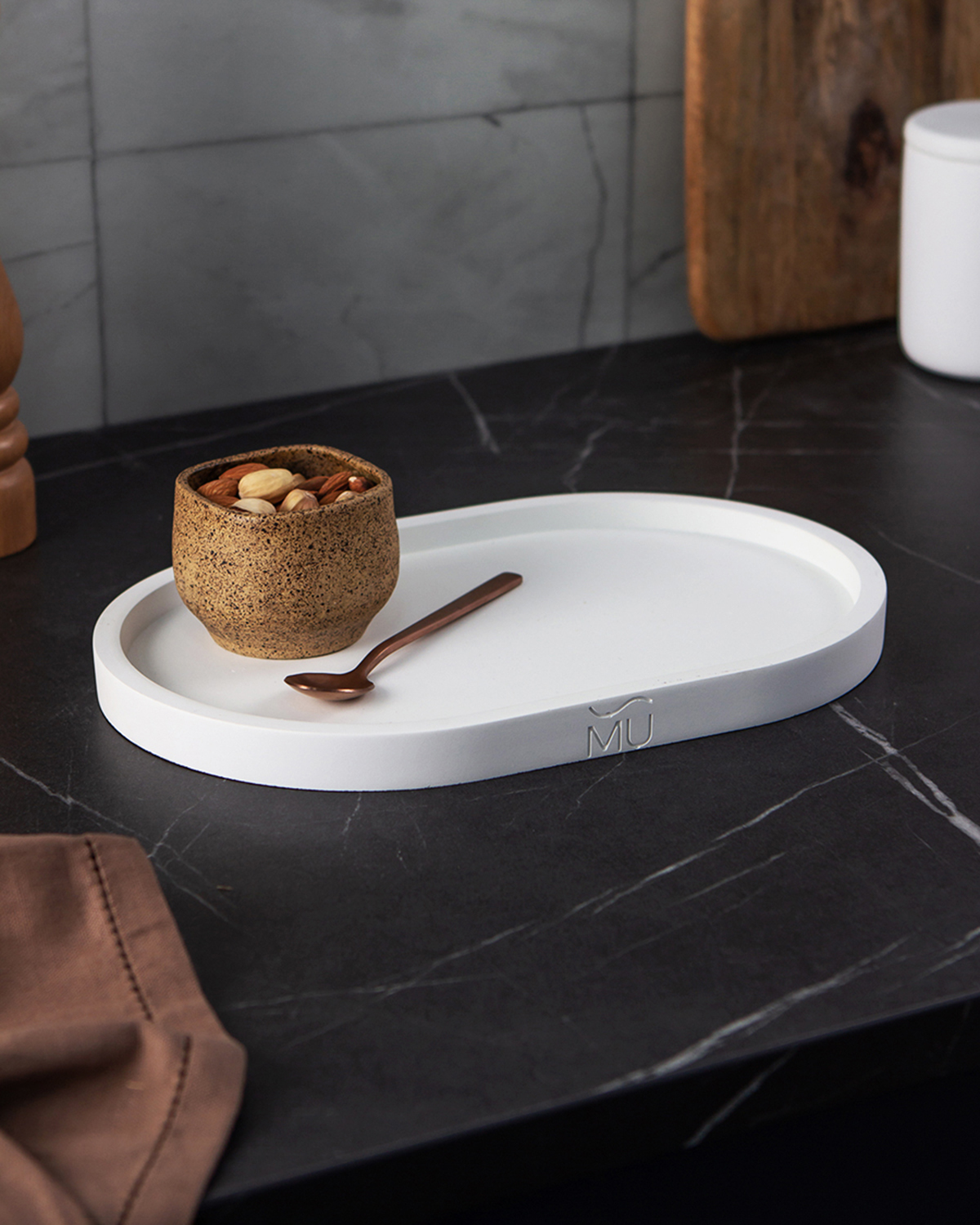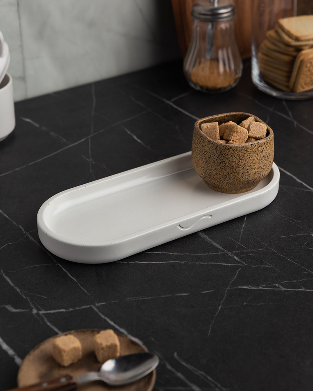 Поднос декоративный кухонный Ben S, 26x11 см, бетон, белый глянцевый