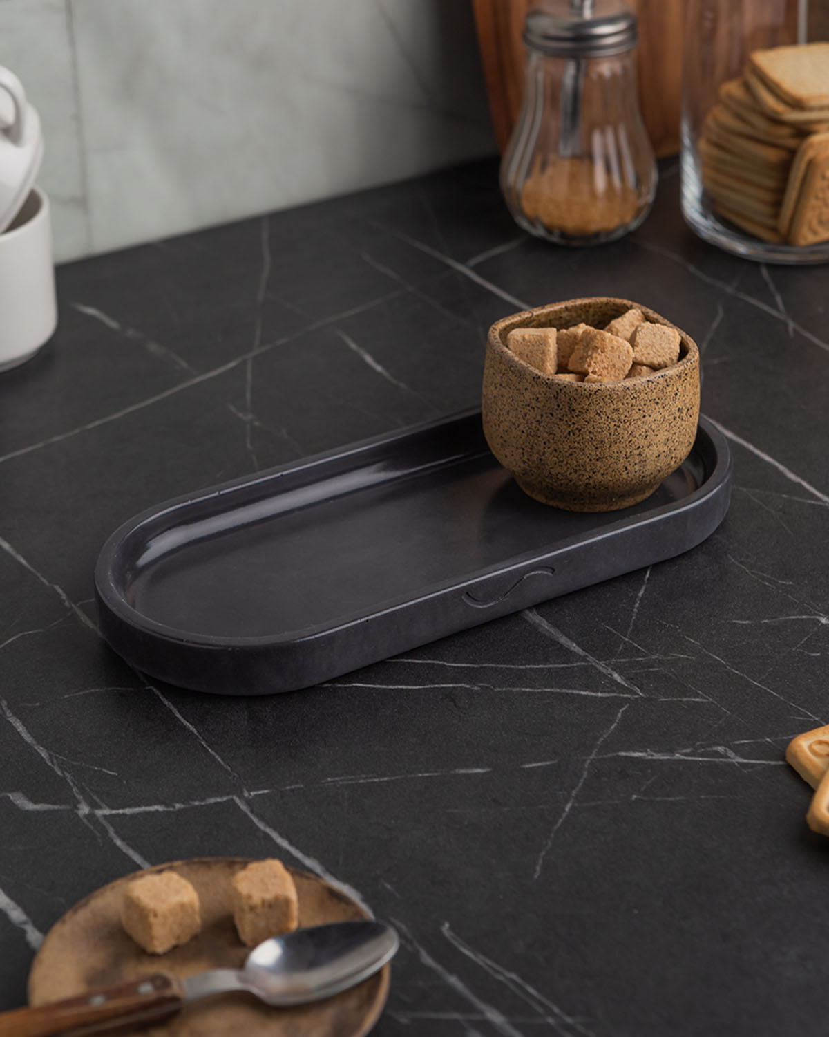 Поднос декоративный кухонный Ben S, 26x11 см, бетон, черный глянцевый