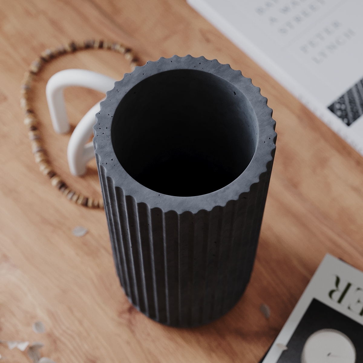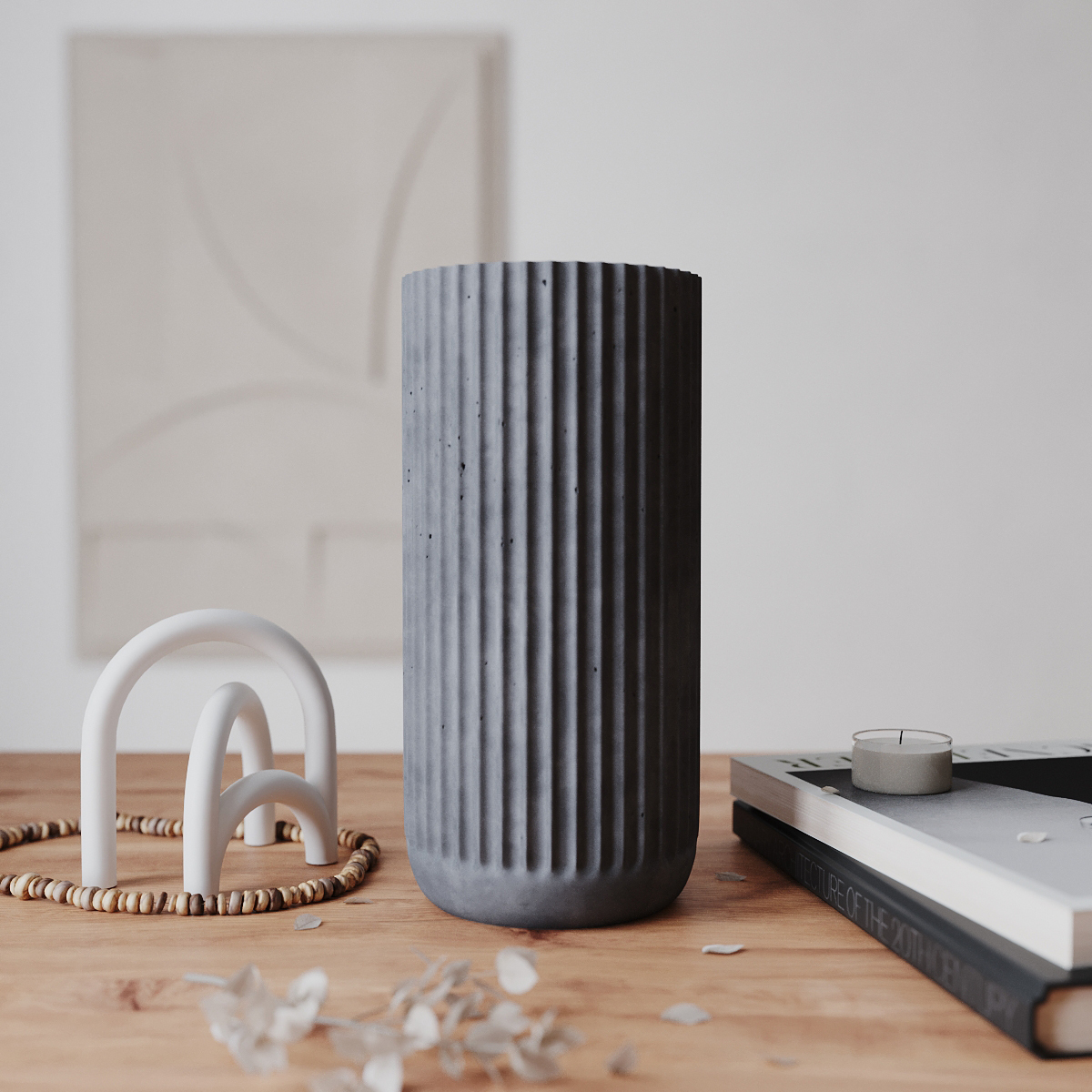 Декоративная ваза для цветов и сухоцветов Chloe, 24 см, бетон, черная матовая