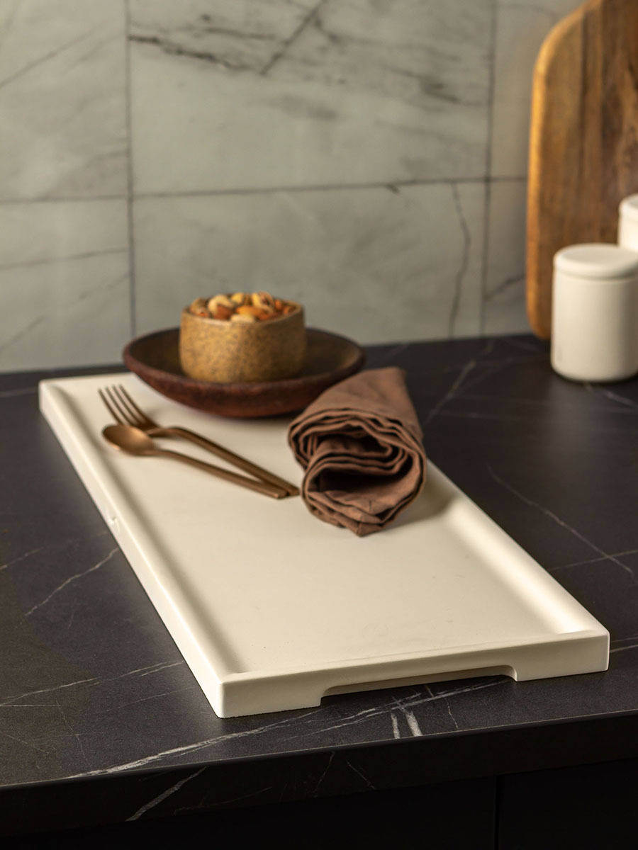 Декоративный поднос из бетона Lora XL Snow White 30x20 см