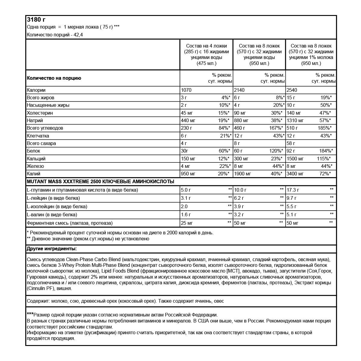 Гейнер с аминокислотами BCAA Mutant Mass XXXTREME 2500 Triple Chocolate 3,18 кг