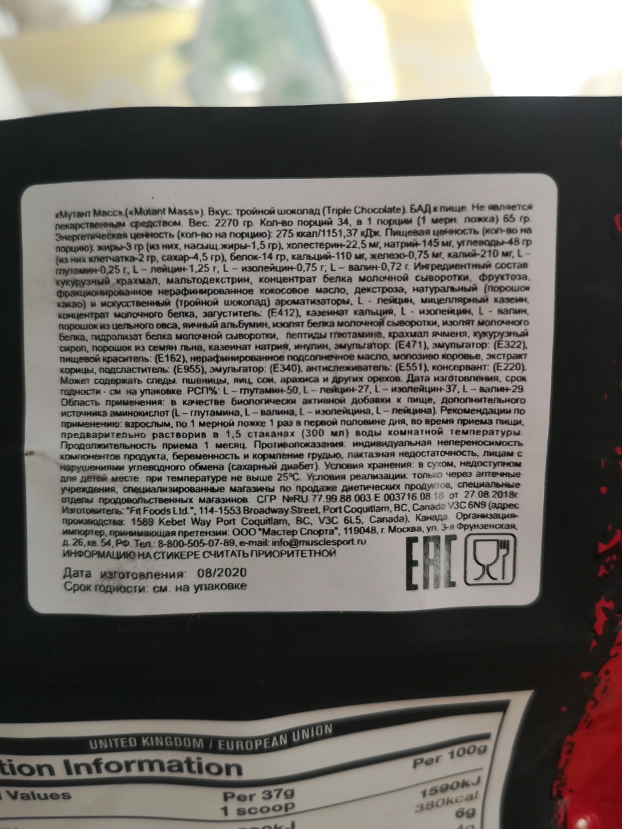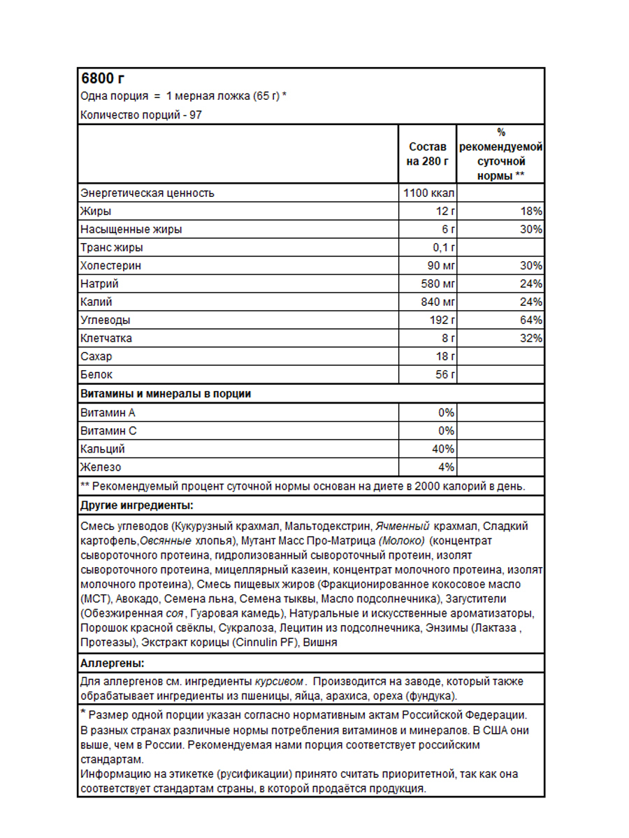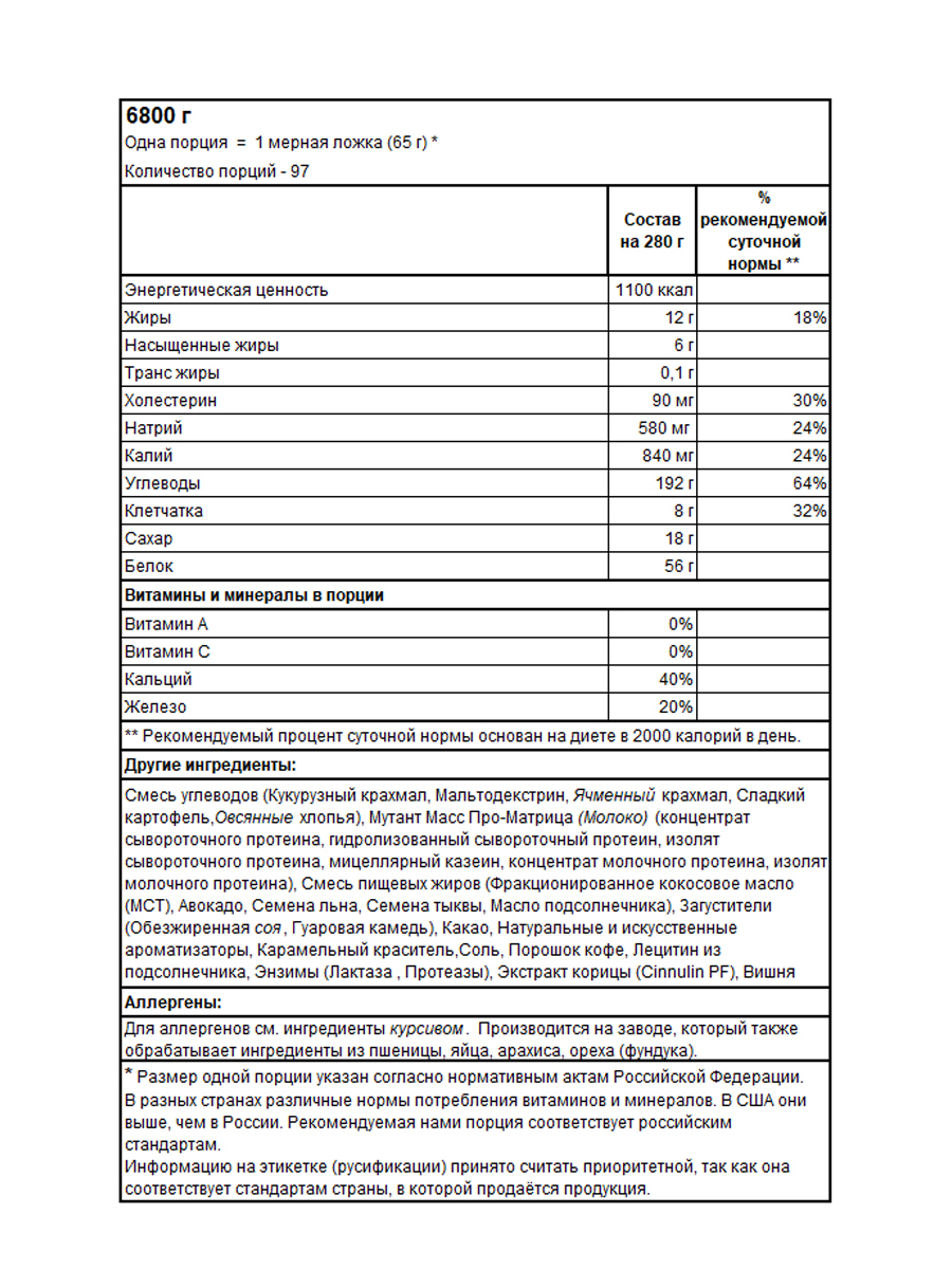 Гейнер Mutant Mass 15 lb (6800 г.) - Тройной шоколад