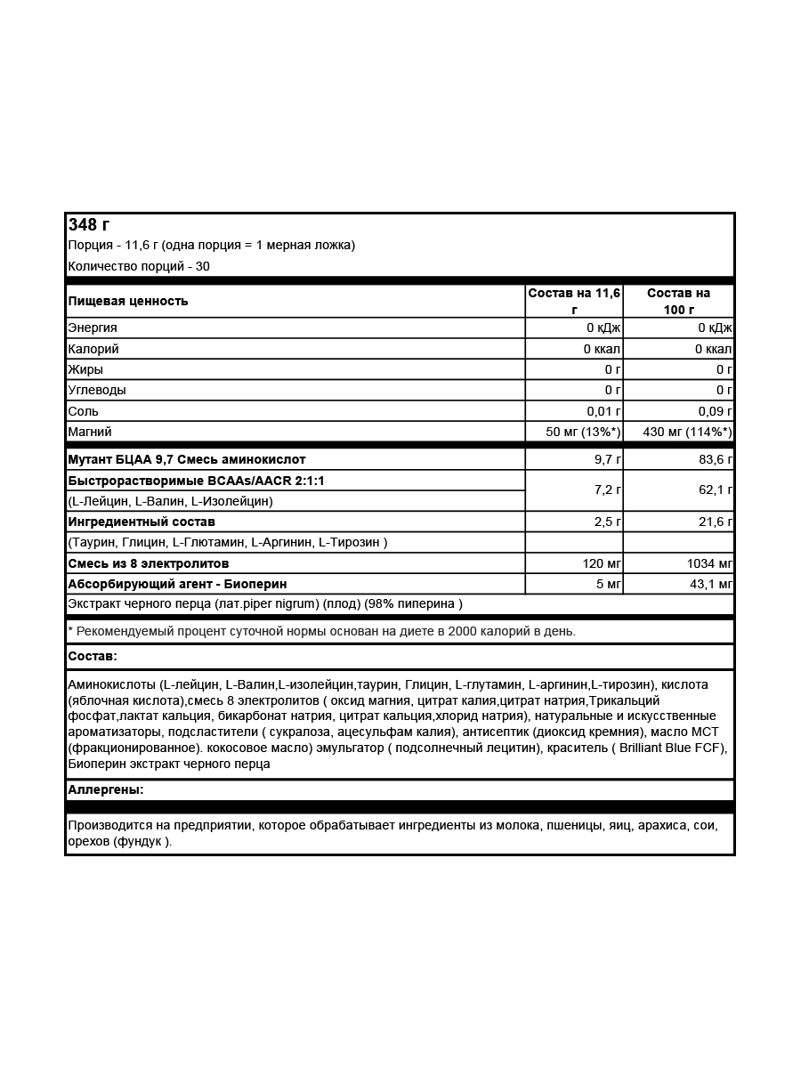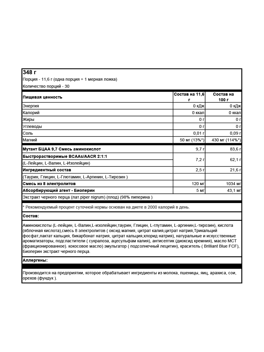 Незаменимые аминокислоты Mutant ВСАА 9.7 с электролитами, порошок 30 порций, 348 гр, Зелёное яблоко