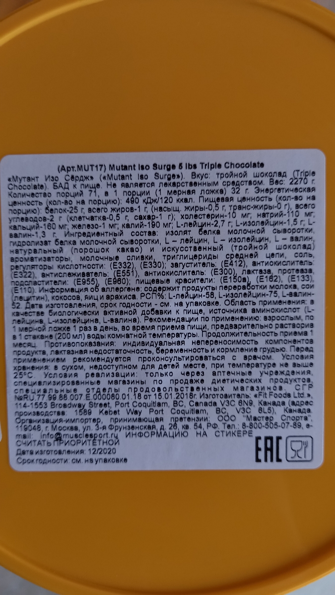 Изолят сывороточного протеина Mutant Iso Surge 727 гр Клубничный молочный коктейль