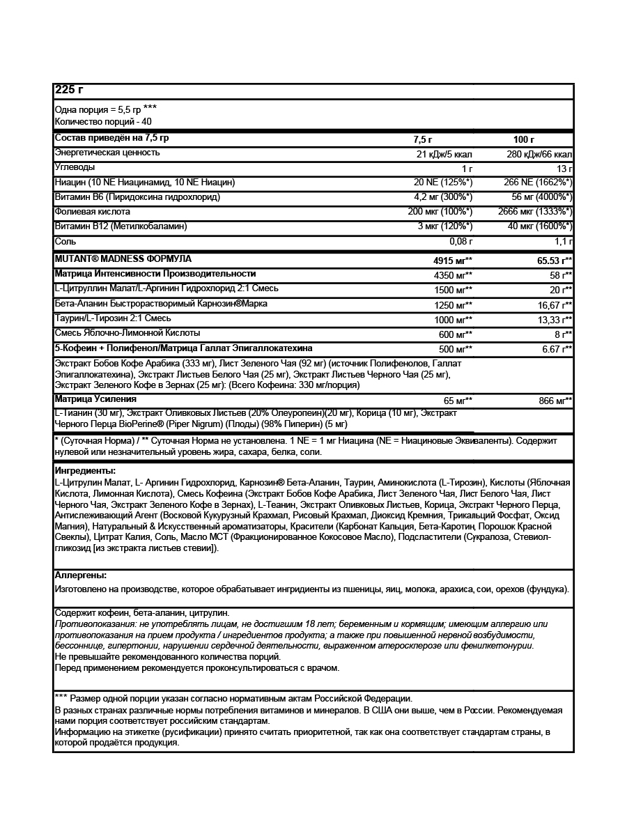 Аминокислотный комплекс Mutant GEAAR (378 г), Тропический фрруктовый пунш