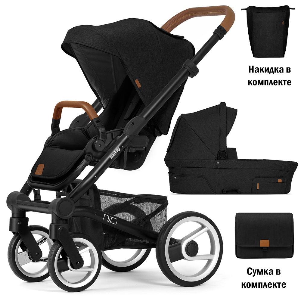 Коляска 2в1 Mutsy Nio North, Cognac Grip Black/ Black в комплекте сумка и накидка на ножки