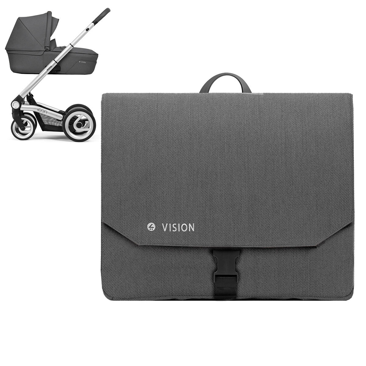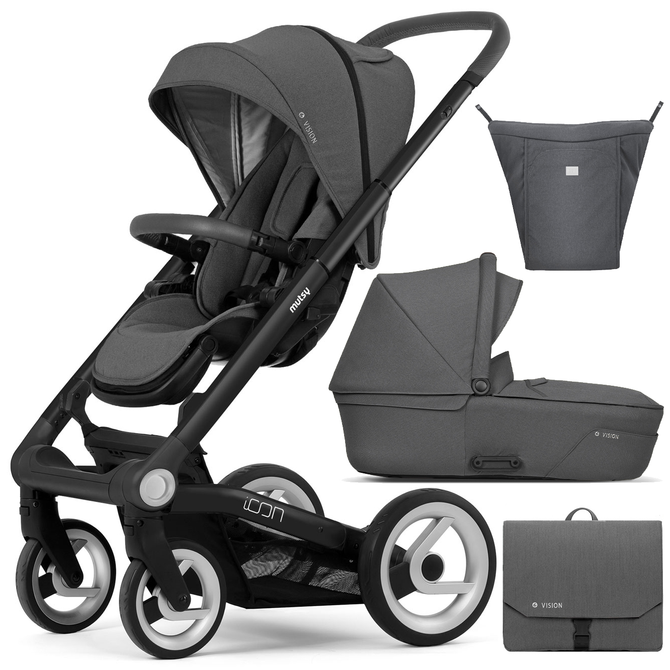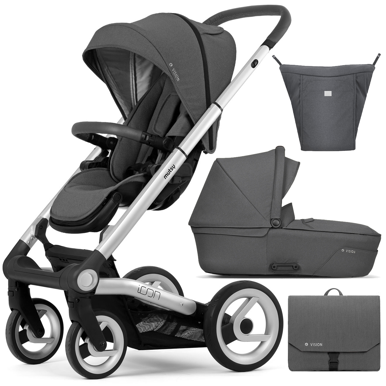 Коляска 2в1 Mutsy Icon Vision, Grip Grey Frame Standart/ Titanium Grey в комплекте сумка, накидка на ножки