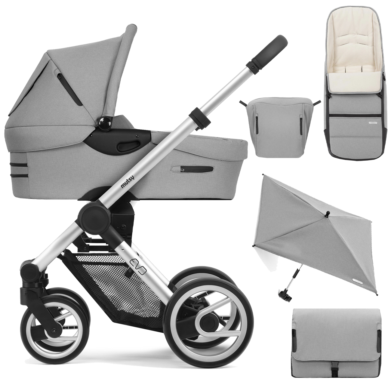 Коляска 2в1 Mutsy Evo2 Bold, Grey Grip Standart/ Pebble Grey в комплекте сумка, конверт, накидка на ножки, дождевик, зонт