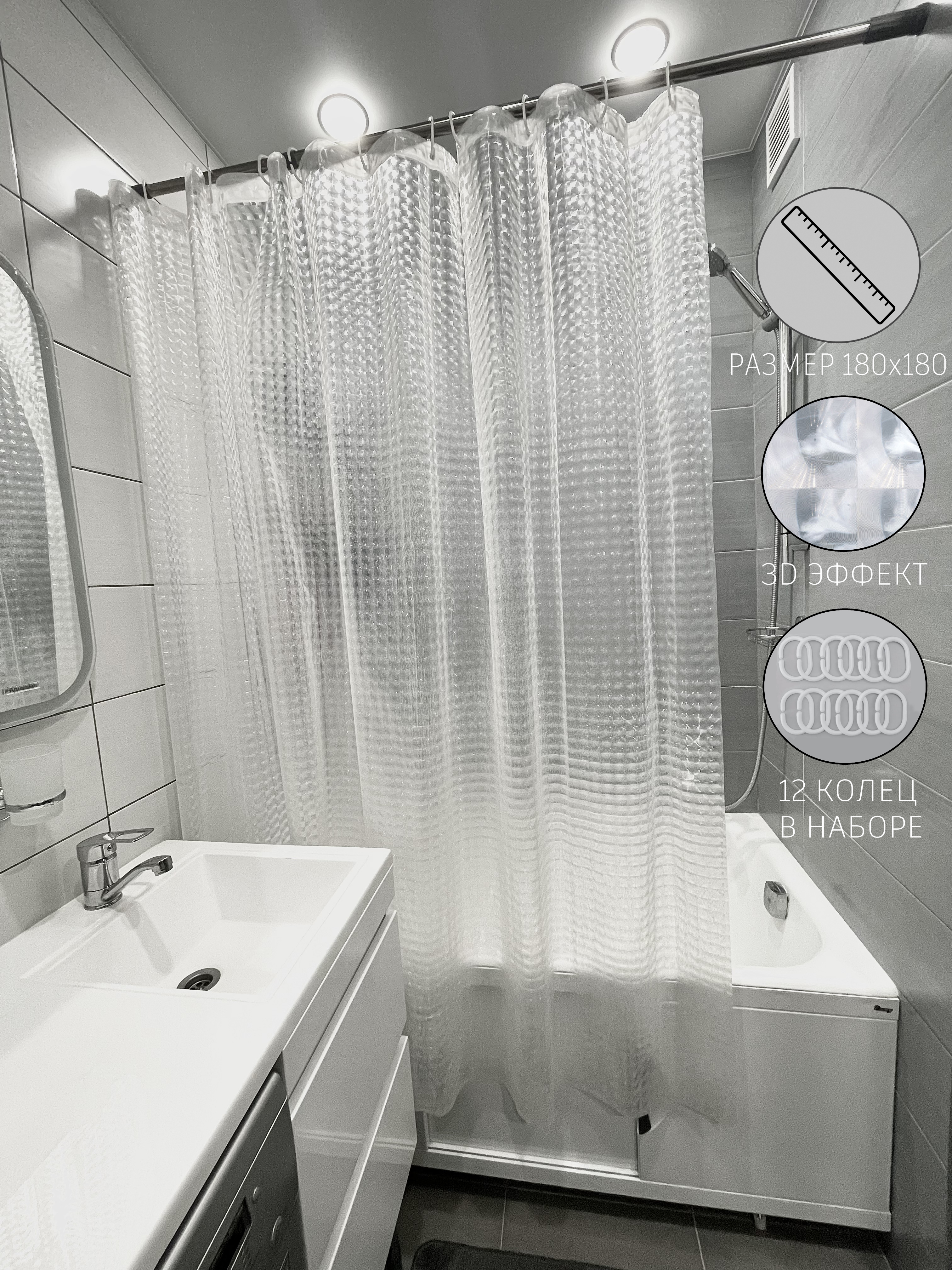 Штора для ванной 3d / 180х180 см / 3D / Занавеска для ванной / Шторка для ванной комнаты /В комплекте кольца 12шт