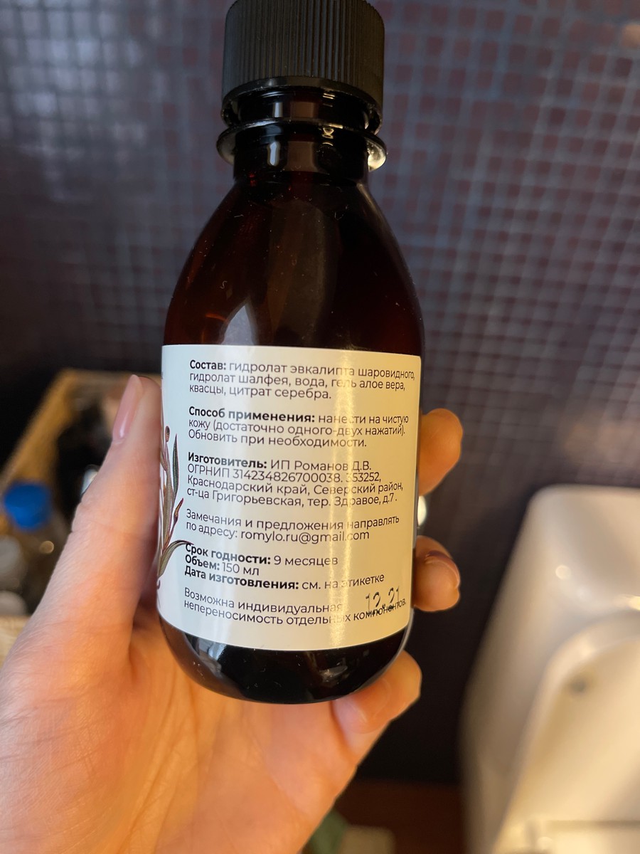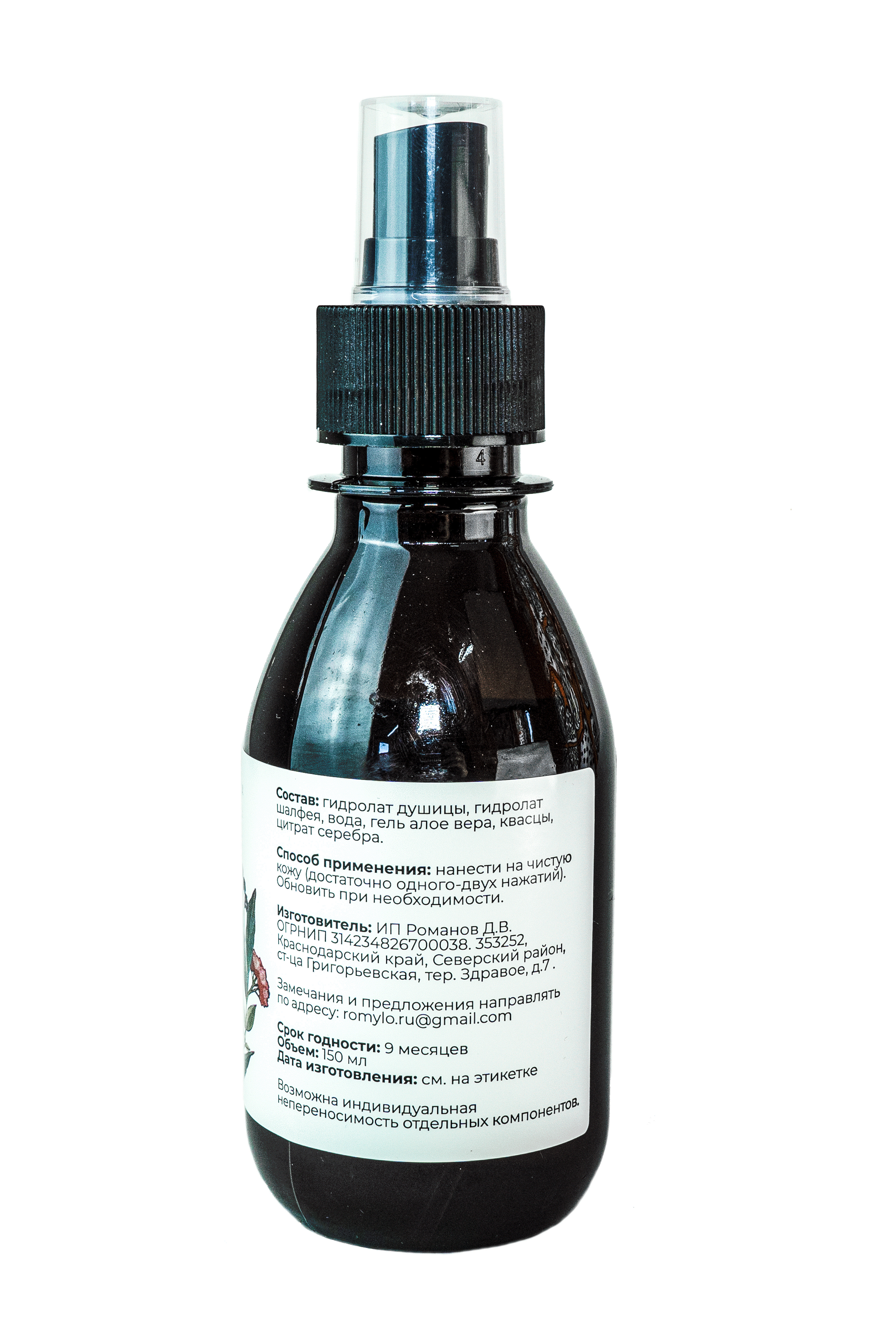 "Мыловарня Романовых"/Гидролат Шалфея/150 мл/для жирных волос/против перхоти и прыщей/очищающий