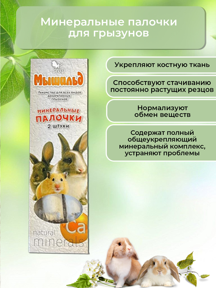 Зерновые палочки 'Мышильд' для декоративных кроликов, с душистым сеном, коробка 2 шт, 120 г