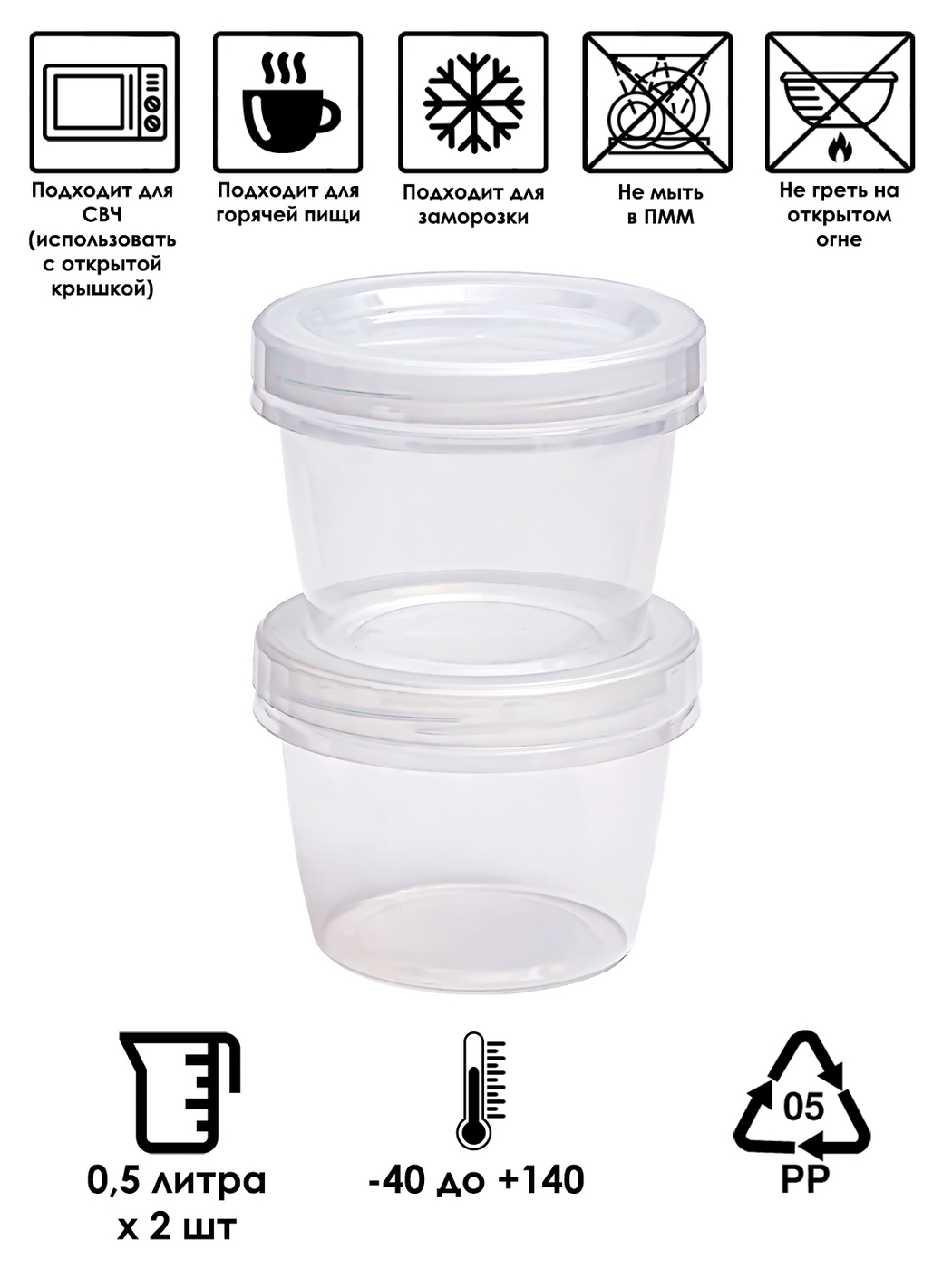 Контейнер пищевой Nakaya, 500 мл, 2 шт
