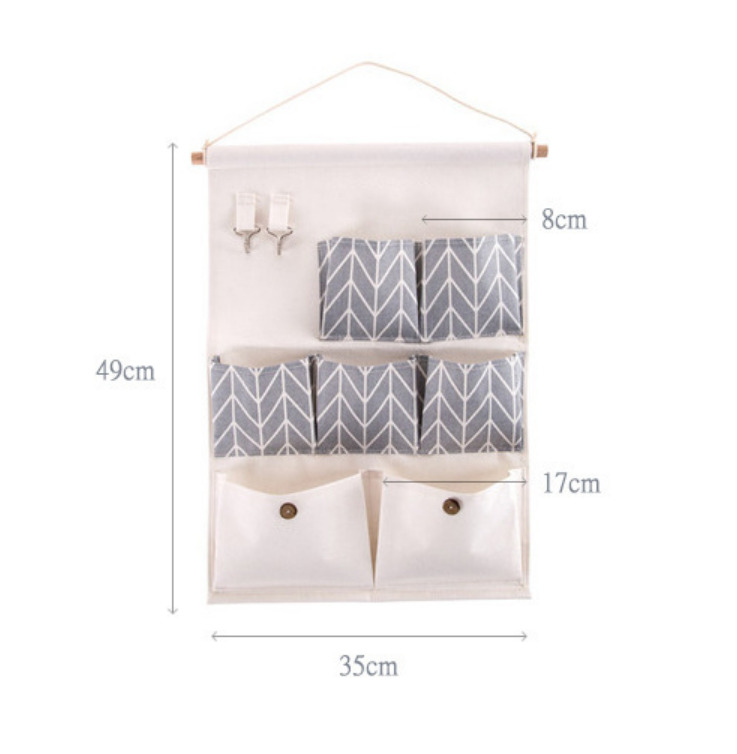 Органайзер настенный подвесной для хранения вещей 7 кармашков и 2 крючка (зеленый)
