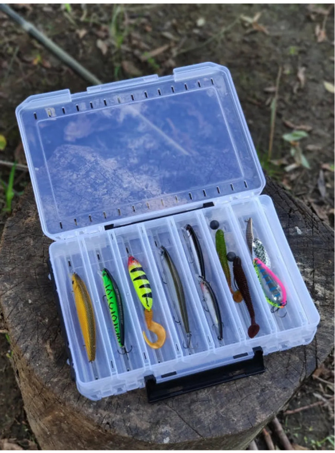 Бокс, коробка рыболовная двухсторонняя для воблеров, раттлинов и блёсен. 10 ячеек 20х18х4,5