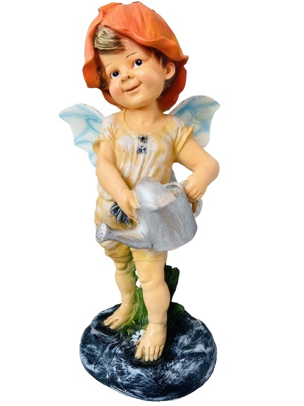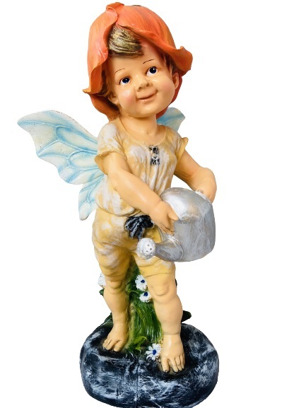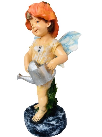 Садовая фигурка Мальчик на камне с лейкой с крылышками Н-46см