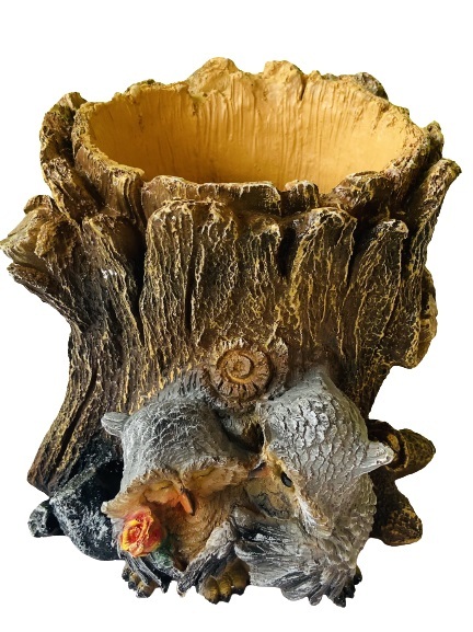 Садовая фигурка-кашпо "Пень влюбленные совы Н-17см,D-13см"