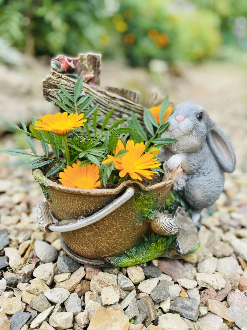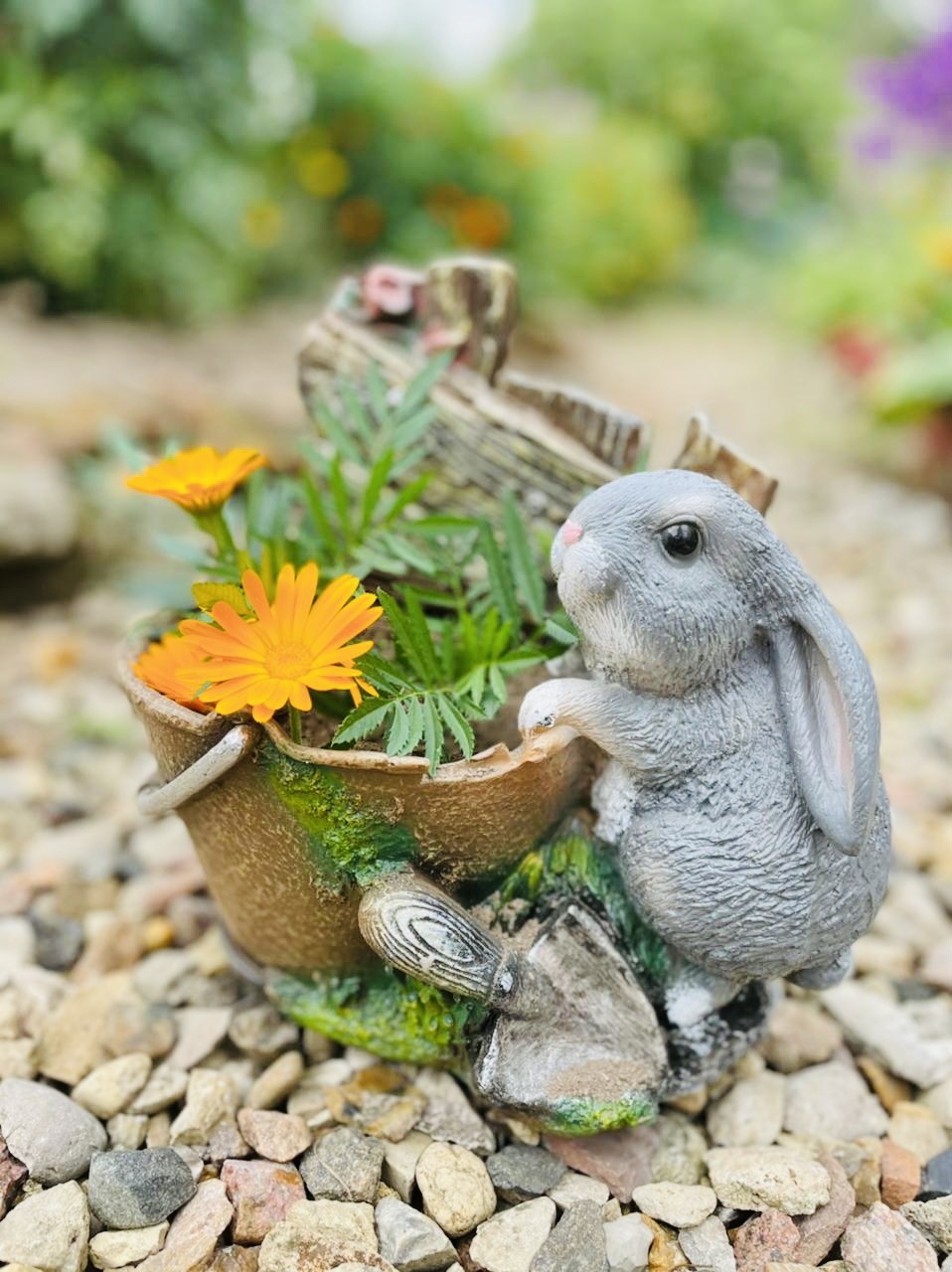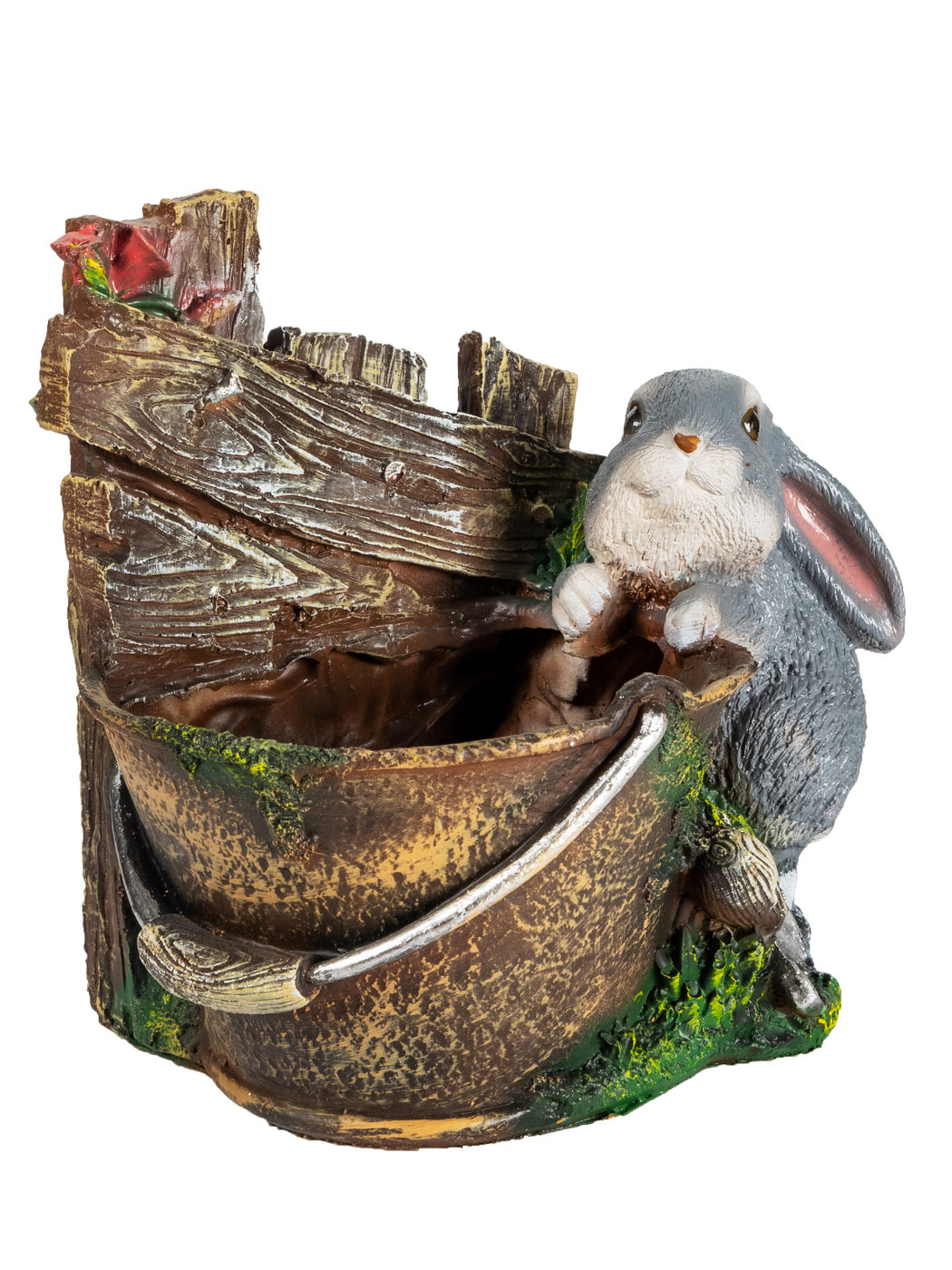 Садовая фигурка-кашпо Заяц с ведром у забора Н-24см, D-16см
