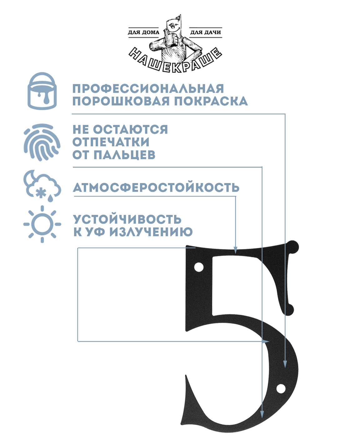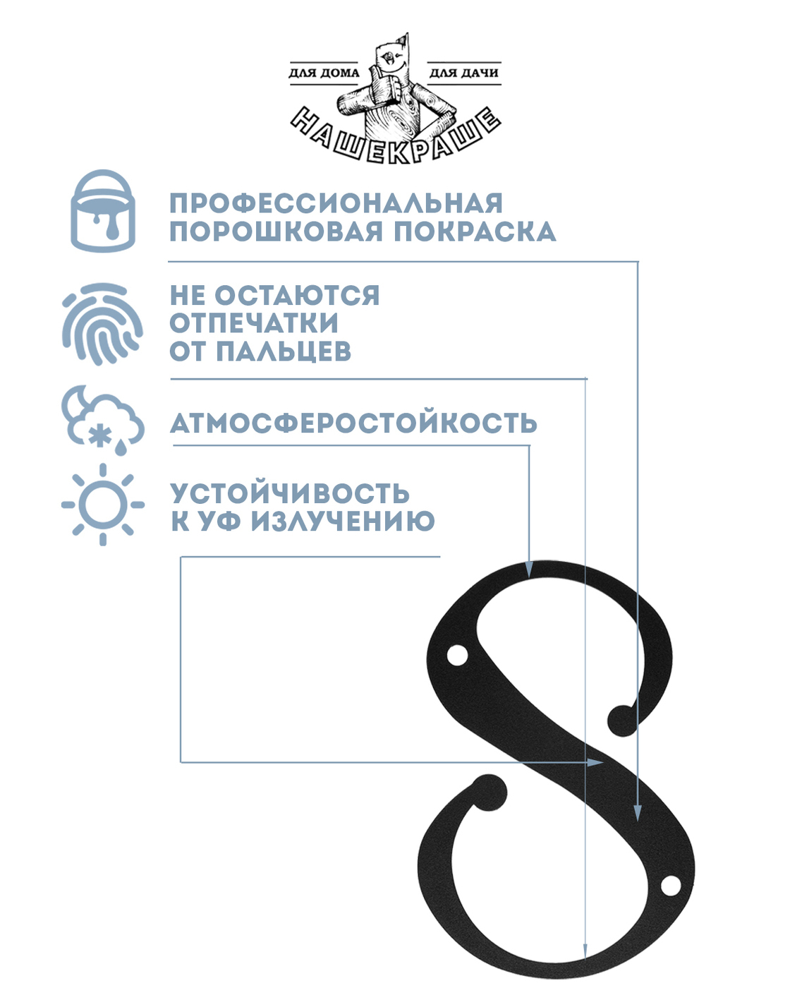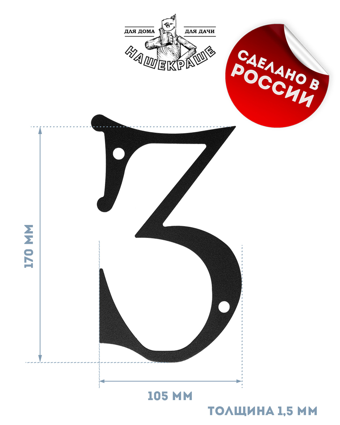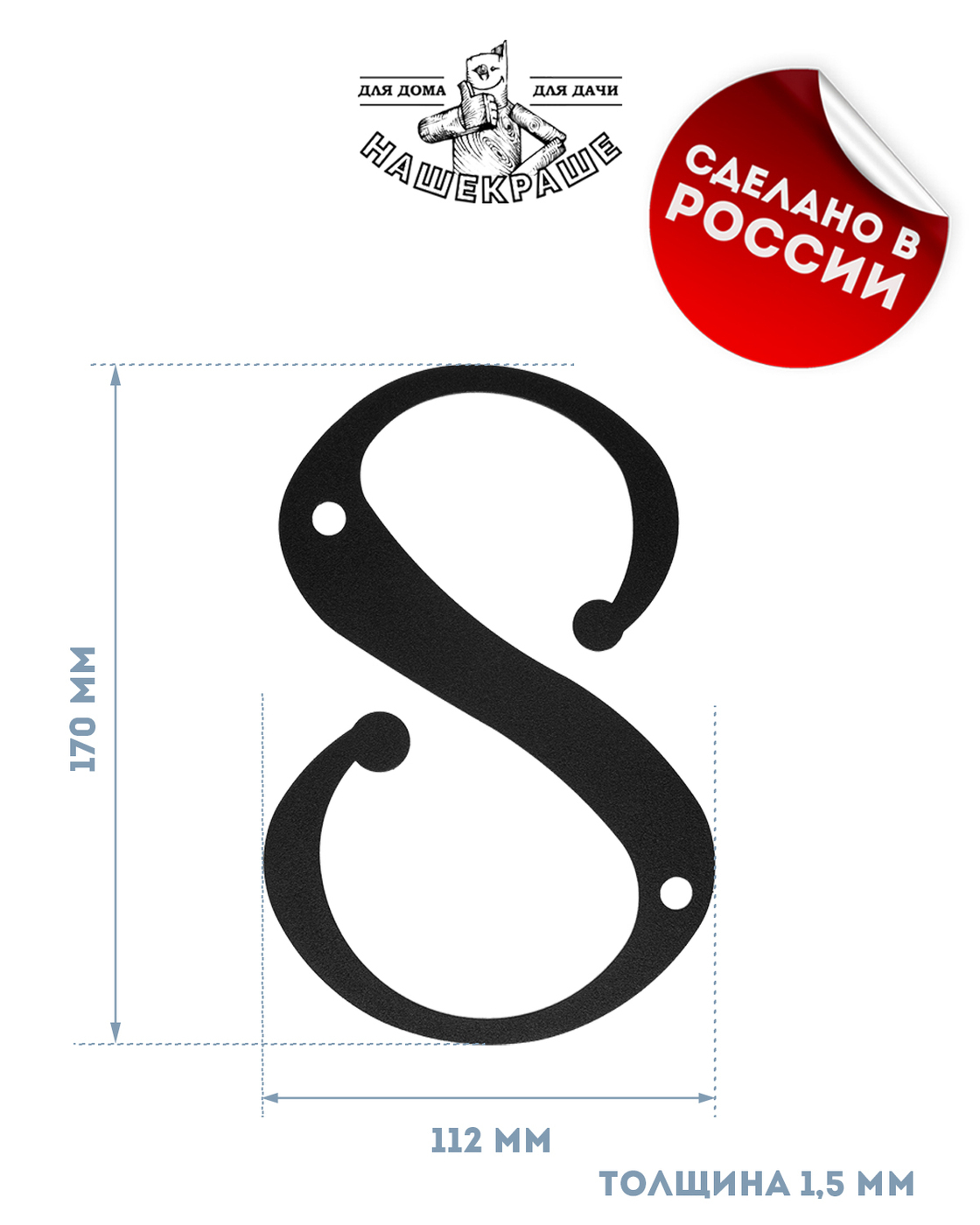 Цифра большая "8", 170х112 мм, металлическая, черная.