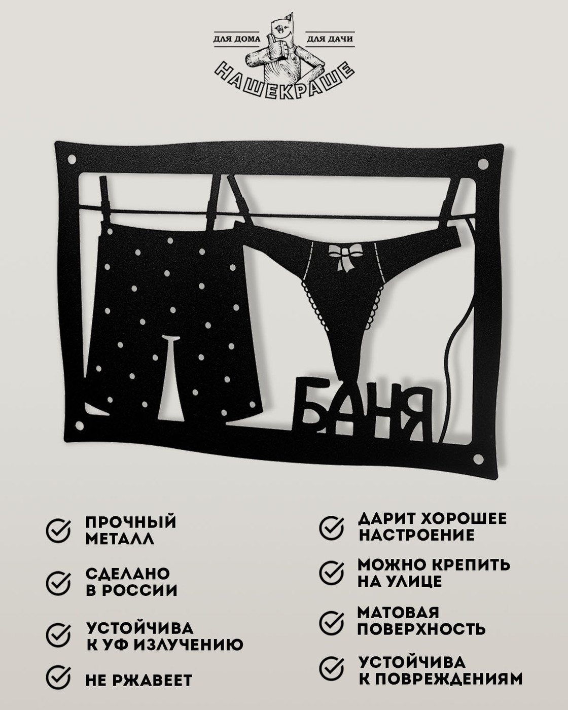 Табличка для бани и сауны "Баня", металлическая, авторский дизайн, 35 х 24 см