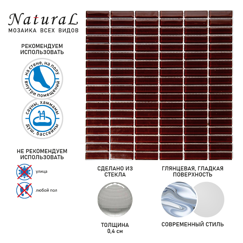 Плитка мозаика Natural Бордюры 5 см x 30.5 см