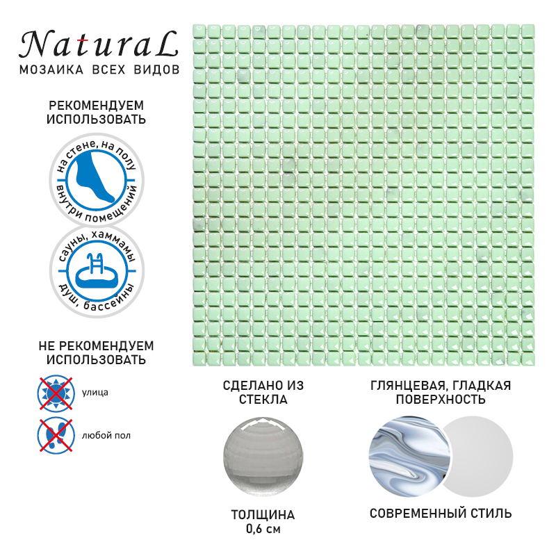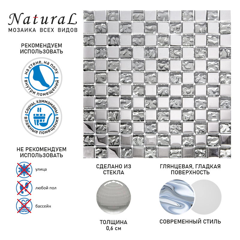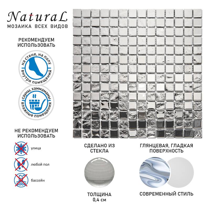 Плитка мозаика Natural Crystal 29.8 см x 29.8 см, размер чипа: 20x20 мм