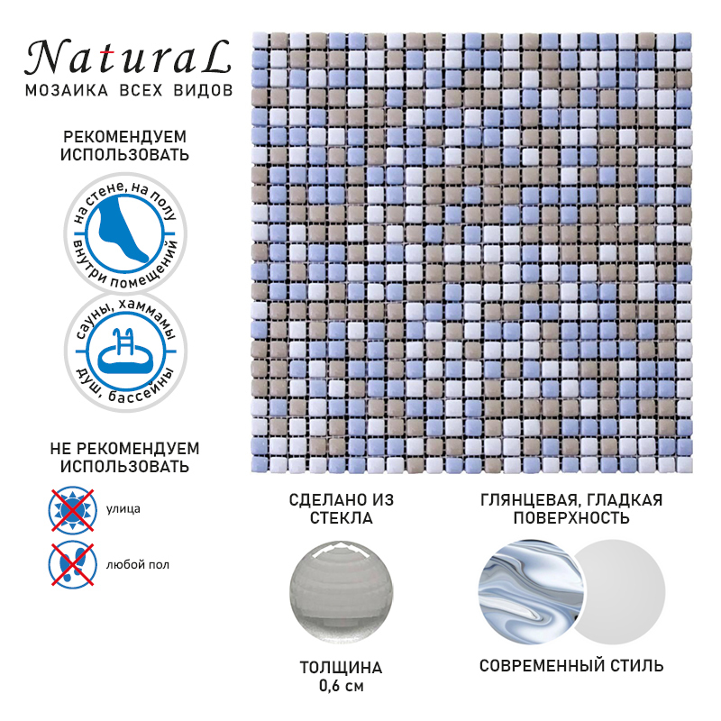 Плитка мозаика Natural BSU 29,8 см x 29,8 см, размер чипа: 15x15 мм