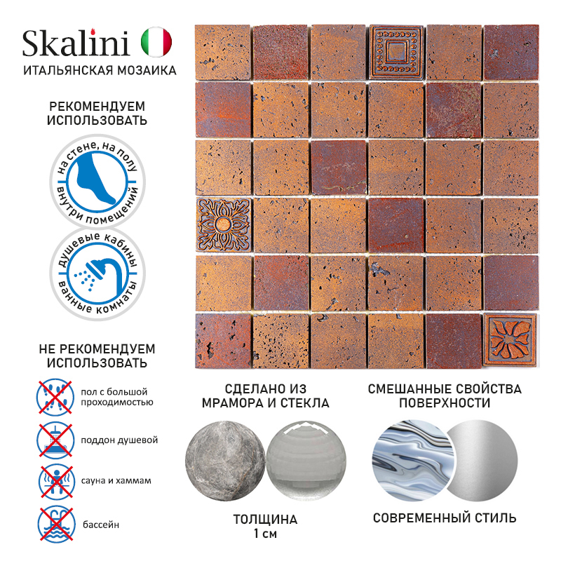Плитка мозаика Natural Royal bronze 30.5 см x 30.5 см, размер чипа: 48x48 мм