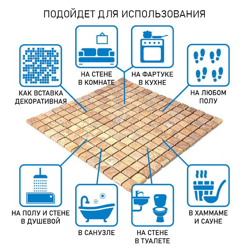 Плитка мозаика Natural 7M073-25P (Onyx Yellow) 30,5 см x 30,5 см, размер чипа: 20x20 мм