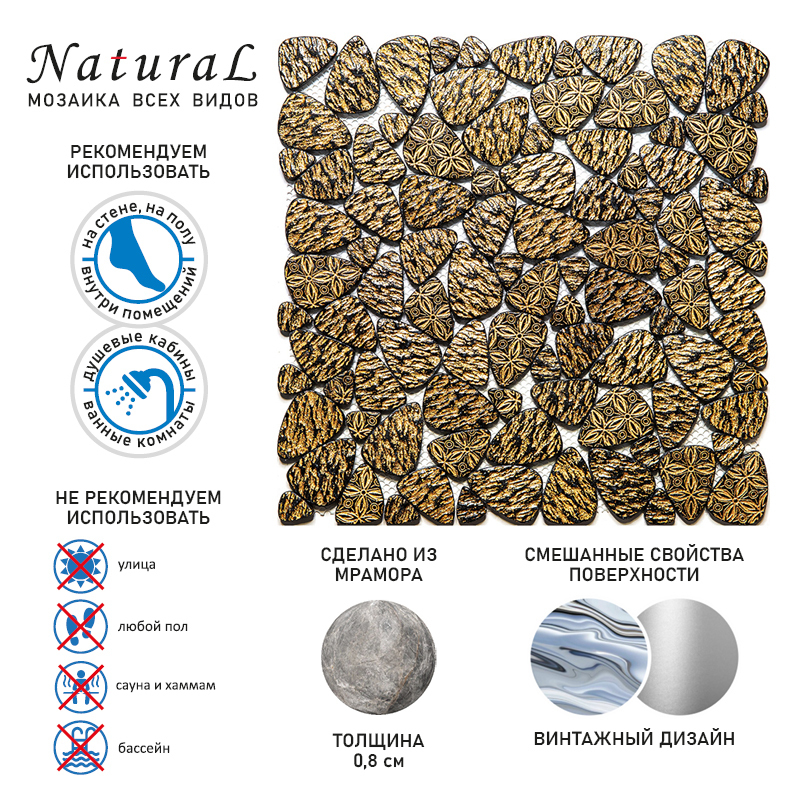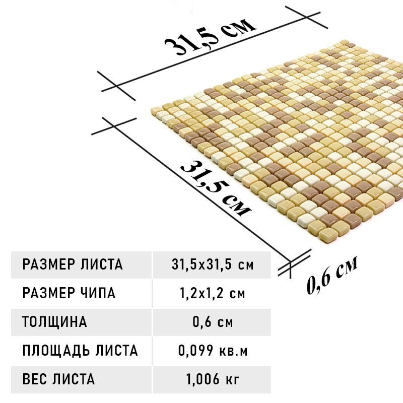 Плитка мозаика Natural Flex 31.5 см x 31.5 см, размер чипа: 12x12 мм