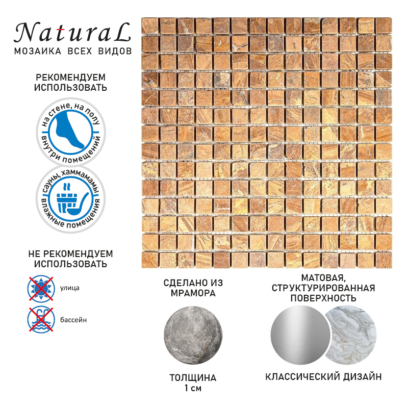 Плитка мозаика Natural 0123 29.8 см x 29.8 см, размер чипа: 15x15 мм