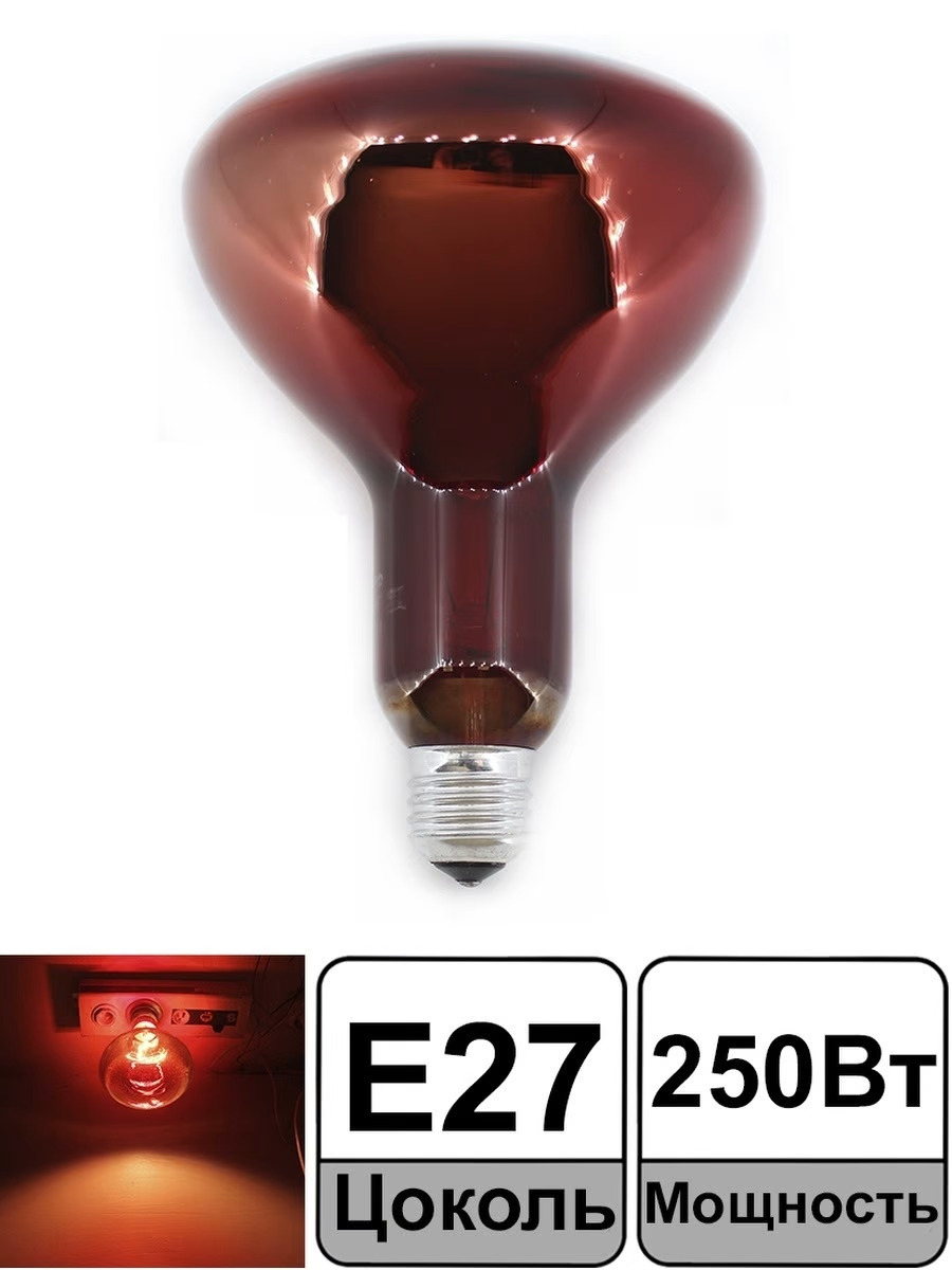 Лампа для курятника, Инфракрасная лампа для обогрева, Лампа термоизлучатель инфракрасная 250Вт Е27