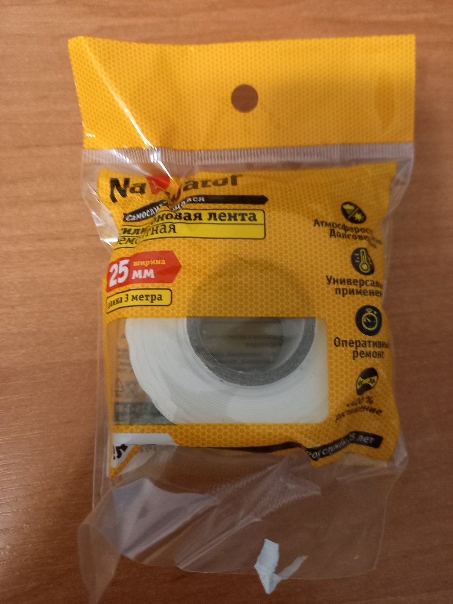 Клейкая лента Navigator NIT-SFSR25 силиконовая самослипающаяся для ремонта труб 25 мм 3 м