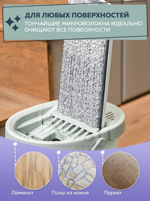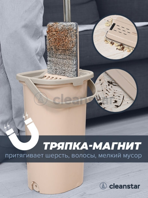 Швабра. Швабра с отжимом. Швабра для мытья полов. Швабра с ведром. Насадка для Швабры - 2 шт.