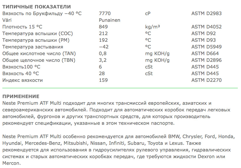 Масло трансмиссионное Neste Premium ATF Multi 1л полностью синтетическое