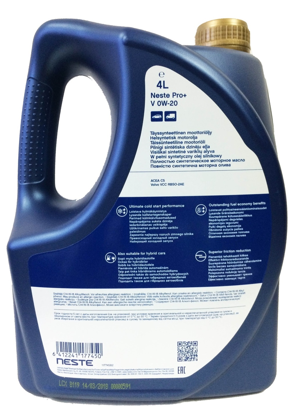 Моторное масло Neste Pro+ V 0W-20 Синтетическое 4 л