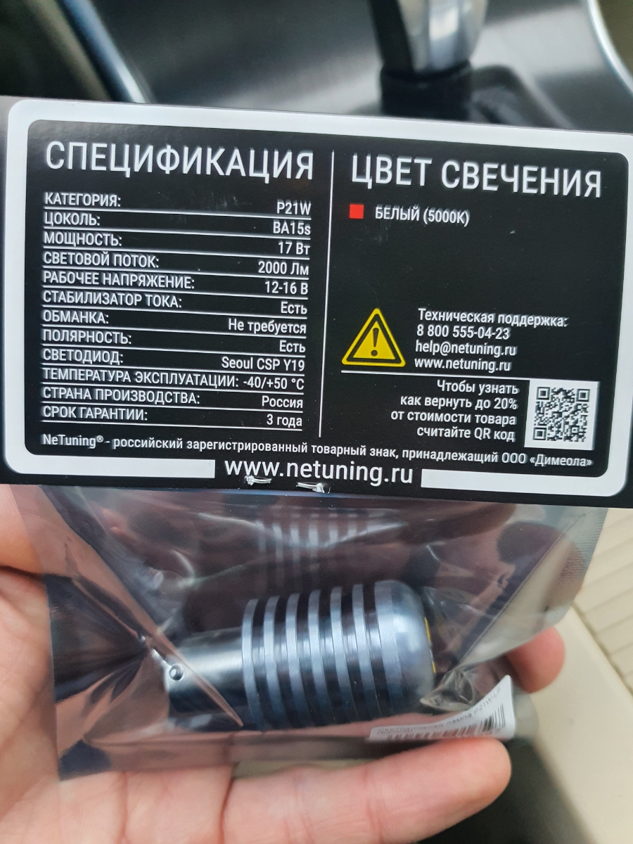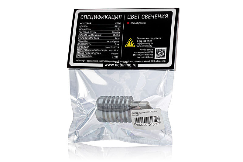 Автомобильная светодиодная лампа NeTuning P21W-LP для указателей заднего хода, 1156, BA15s, 2000 Лм, 17 Вт, белый 5000К, 1 шт.
