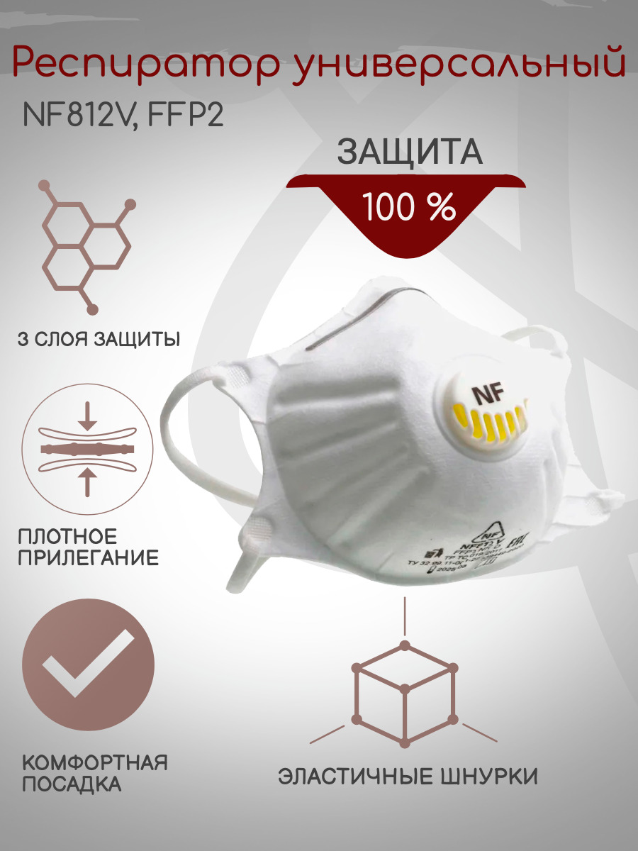 Респиратор универсальный, Респиратор профессиональный НЕВСКИЙ ФИЛЬТР NF812V, FFP2, FFP2, 10 шт.