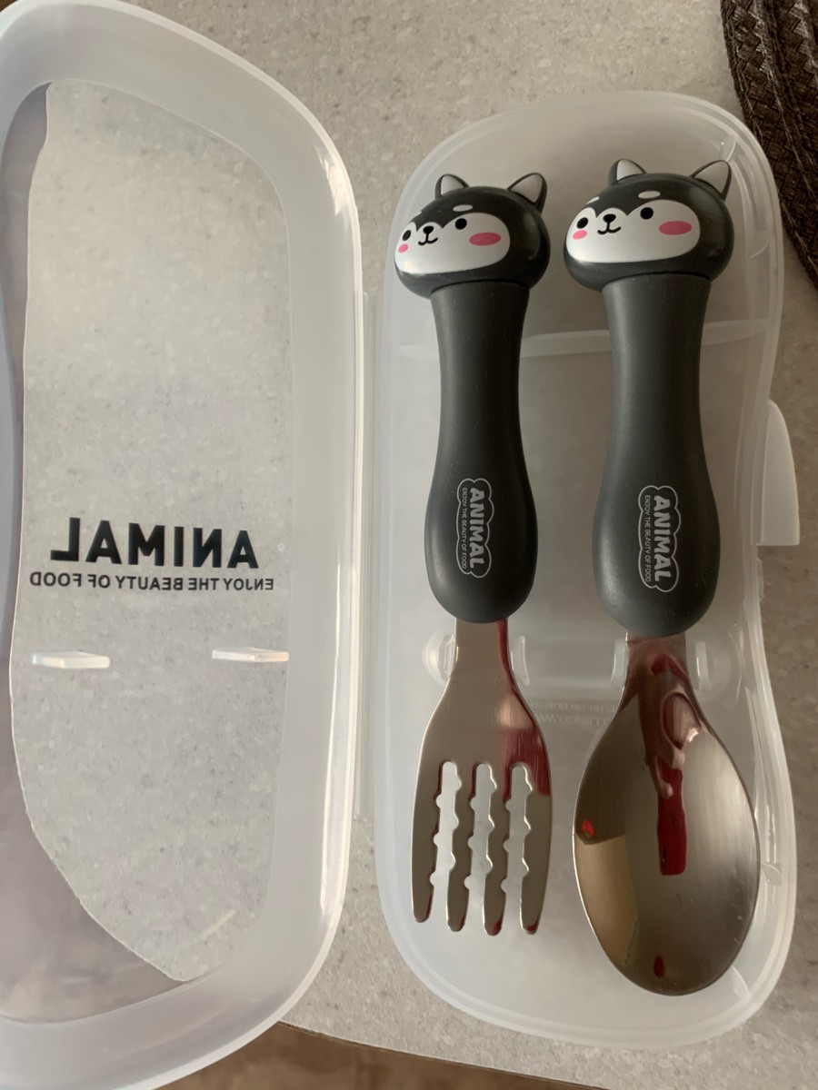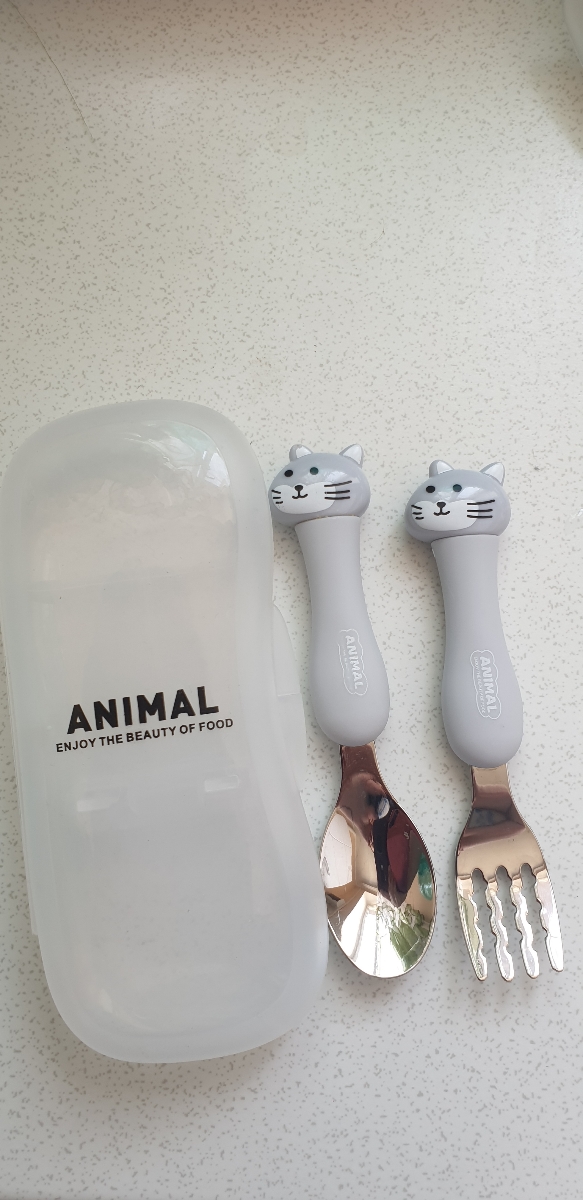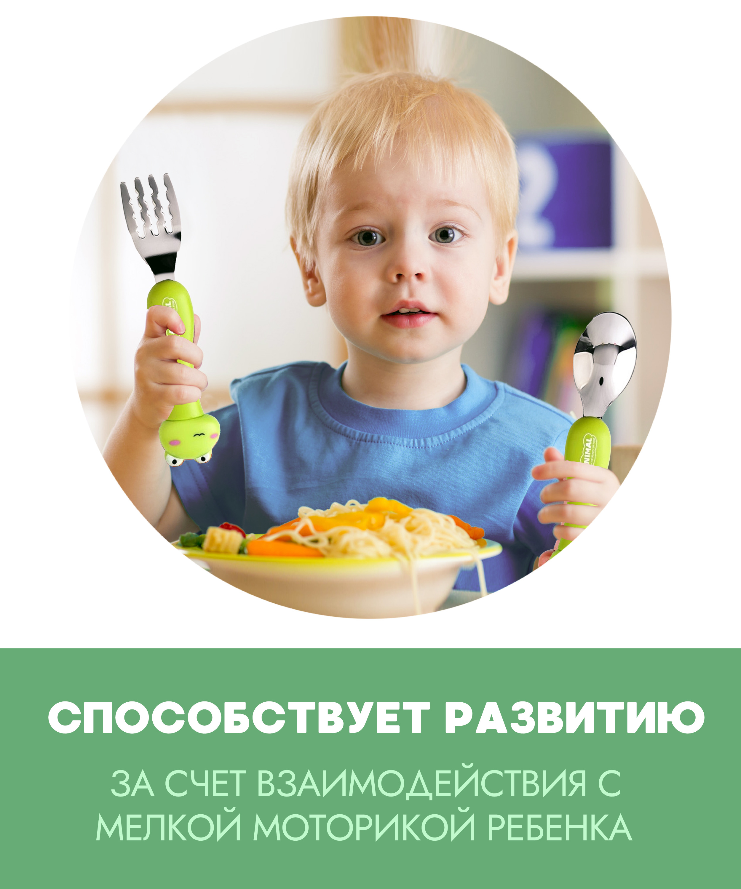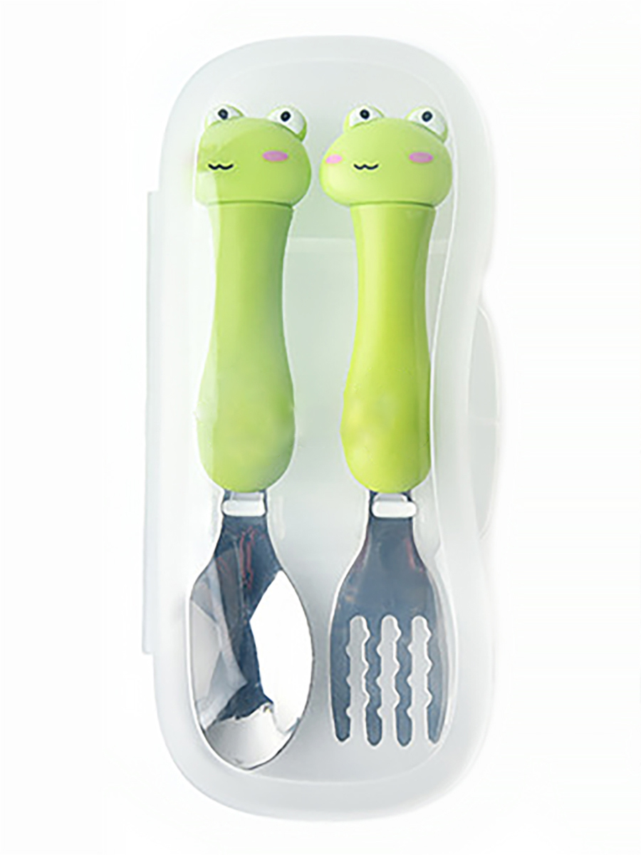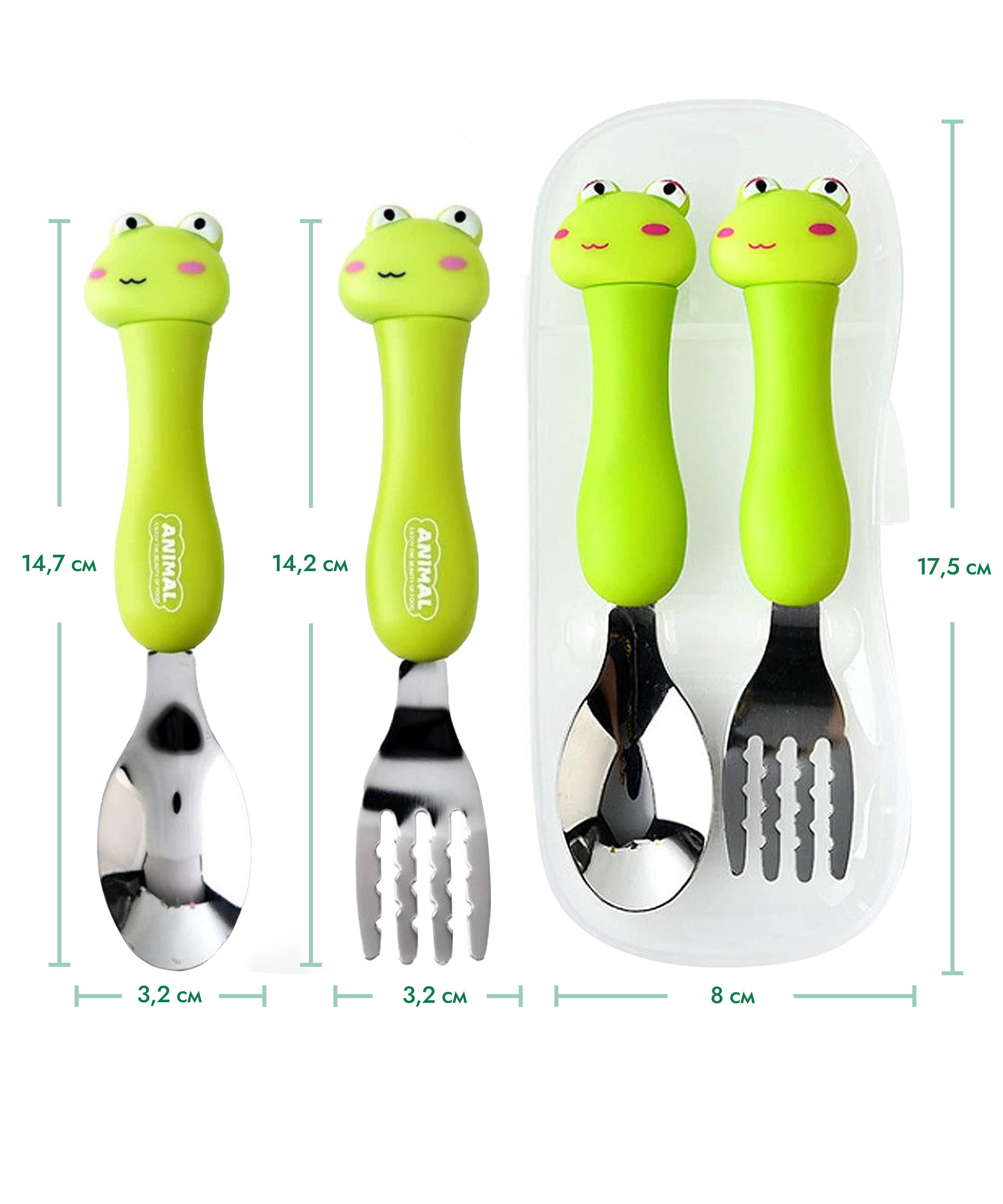 НИКУСИКИ/ Набор детских столовых приборов Мишки: ложка 14,7*3,2 см, вилка 14,2*3,2 см, контейнер 17,5*8 см